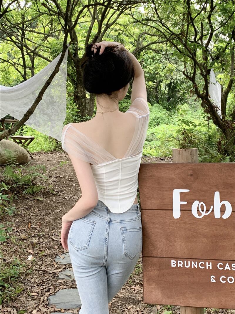 One-shoulder shirt 2022 summer new French sexy pure desire style slim slim mesh top women サマー 夏物 メッシュ スリム ピュア nana37534403492 | modepoisson