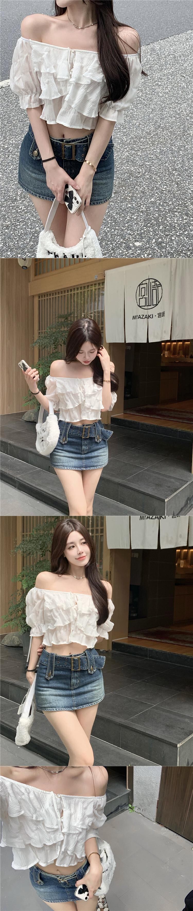 chic and beautiful chiffon shirt 2022 summer new one-shoulder ruffled puff sleeve short top women's ショート シフォン サマー 夏物 nana77974008385 | modepoisson