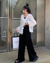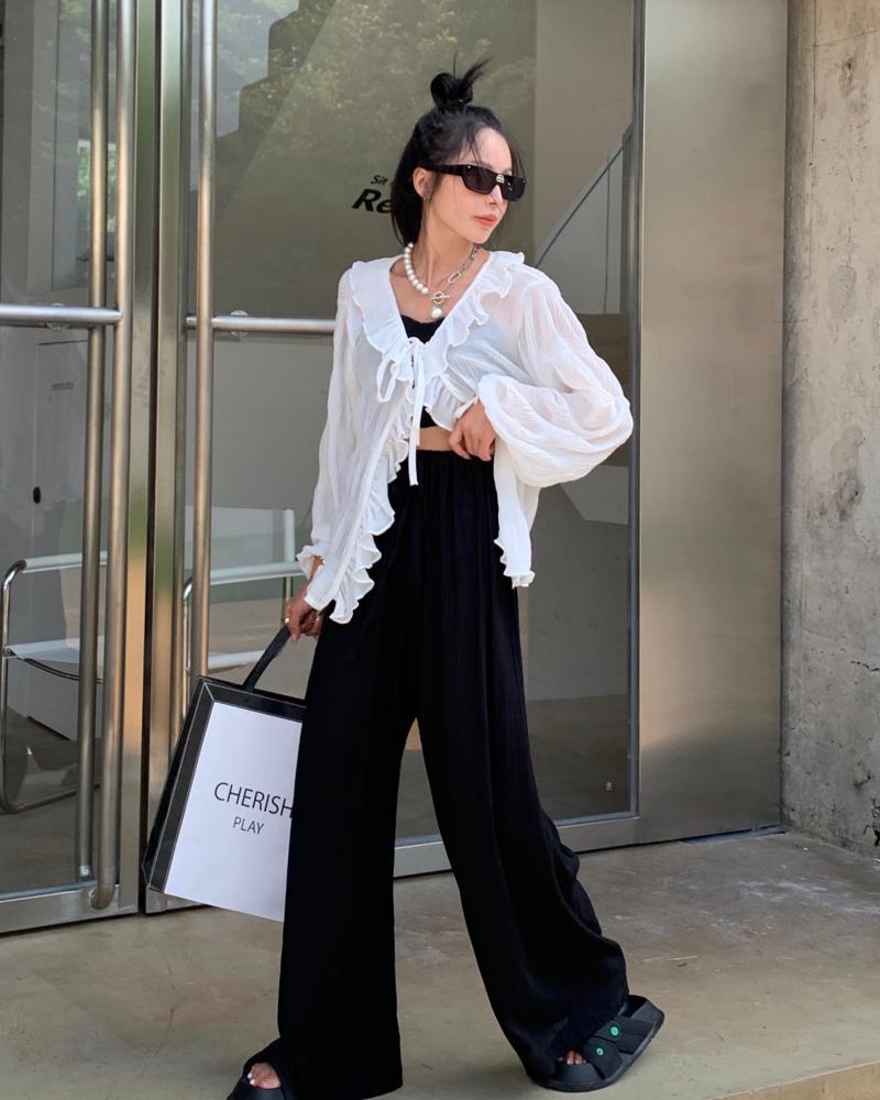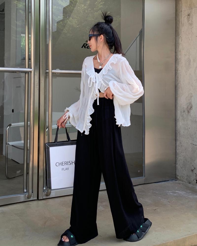 Sunscreen casual trousers women's 2022 summer new thin section wide-legged high-waisted loose straight-tube slim mopping pants カジュアル サマー 夏物 スリム nana33207371097 | modepoisson