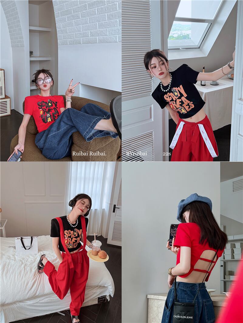sense niche tops 2022 summer new chic and unique backless letters short-sleeved t-shirt women's clothing サマー 夏物 Tシャツ nana61641239143 | modepoisson