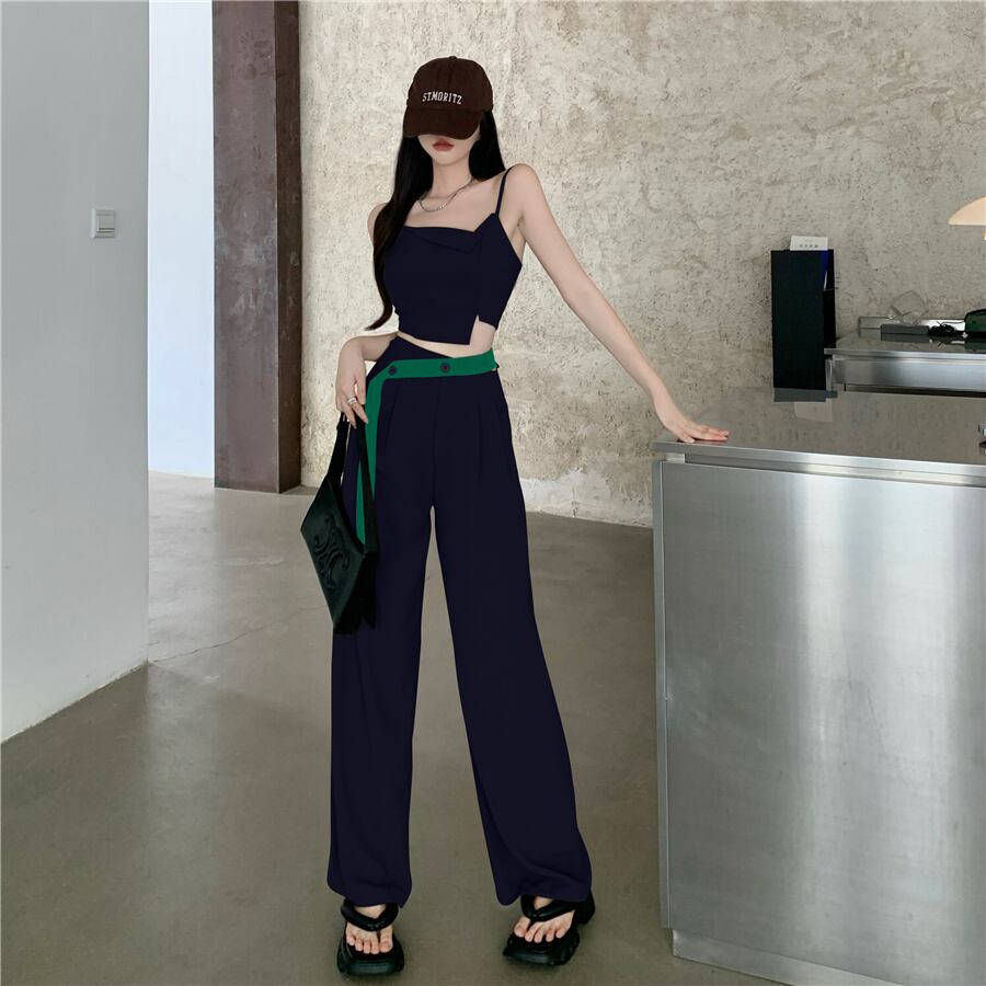 Royal sister suit two-piece summer dress 2022 new temperament sweet and spicy camisole wide-leg suit trousers women's clothing 大人ガーリー スウィート キュート カジュアル サマー 夏物 nana68974685231 | modepoisson