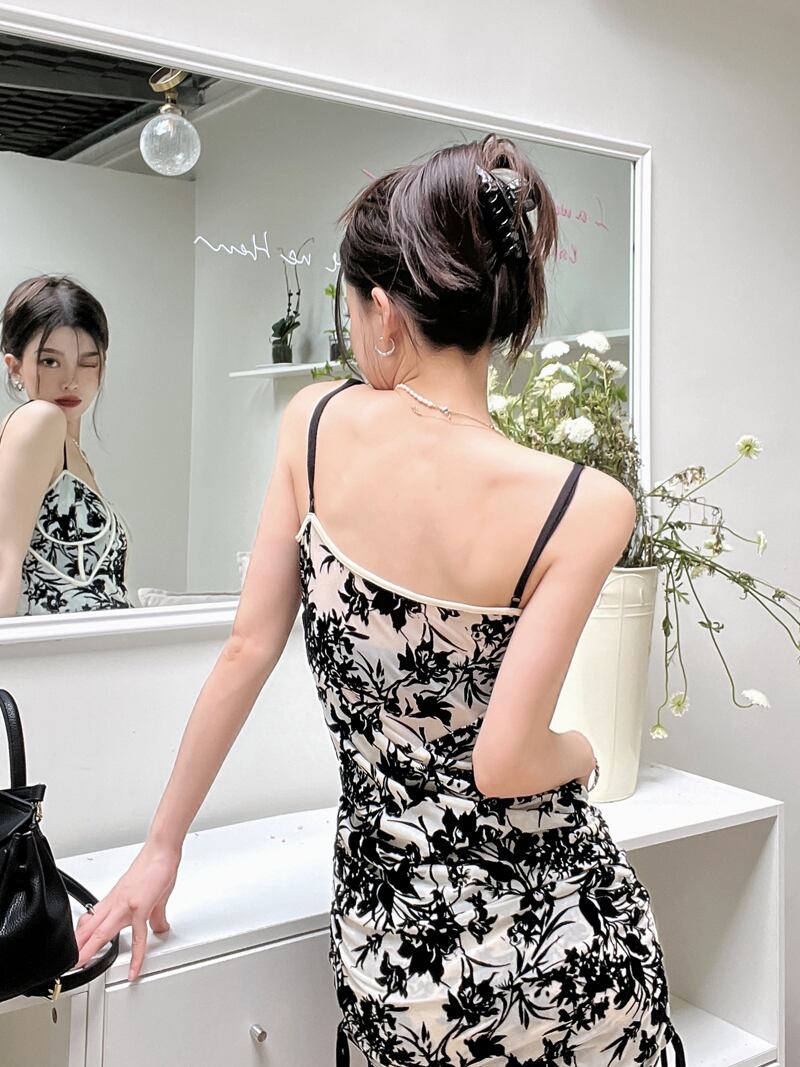 Pure lust French chic and beautiful temperament skirt 2022 summer new drawstring bag hip suspender dress women's サマー 夏物 スカート nana18136947545 | modepoisson