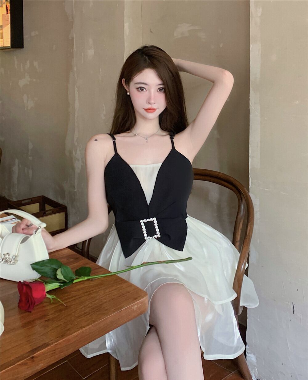 Explosive style suspender dress summer 2022 new small puffy high-end sense waist slim dress skirt women サマー 夏物 スカート スリム nana31987800406 | modepoisson