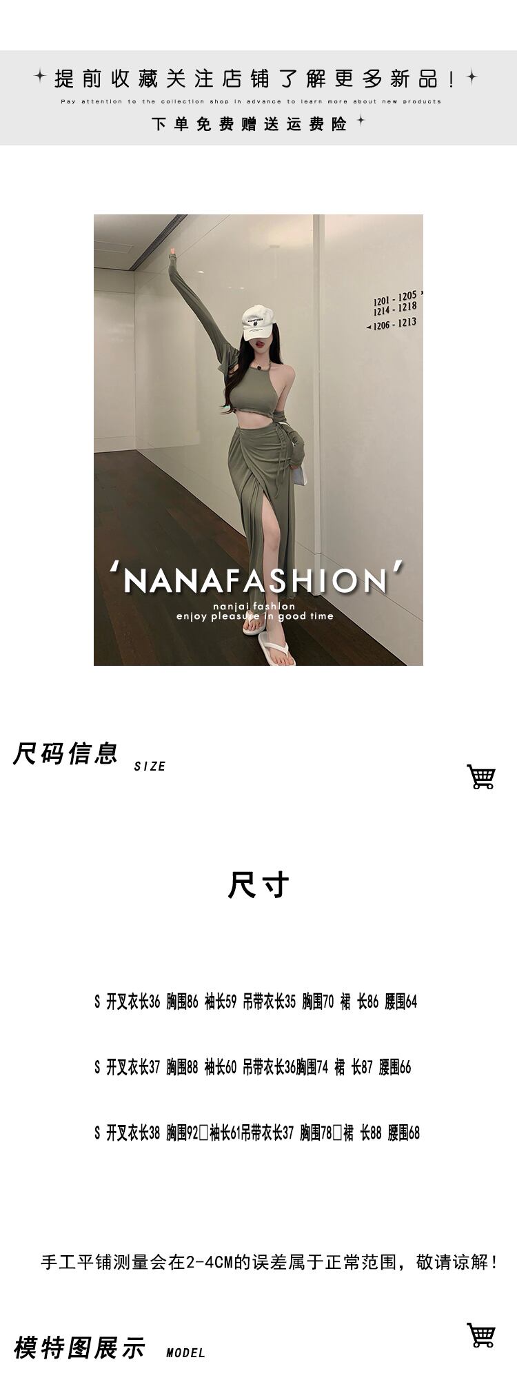 Net red suit women's clothing 2022 summer new fashion age-reducing temperament cardigan hanging neck vest skirt three-piece set レッド カーディガン サマー 夏物 スカート nana4704535467 | modepoisson