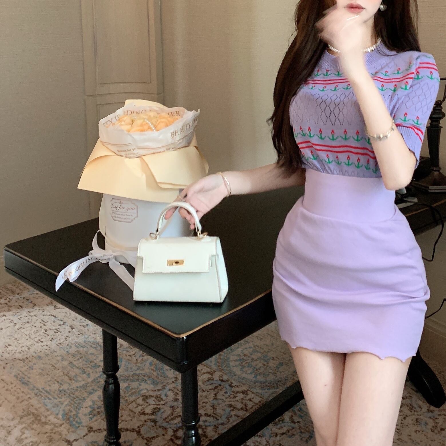 Royal sister light cooked Hong Kong flavor suit skirt female 2022 summer new knitted t-shirt sexy bag hip skirt two-piece サマー 夏物 スカート Tシャツ nana89193382863 | modepoisson