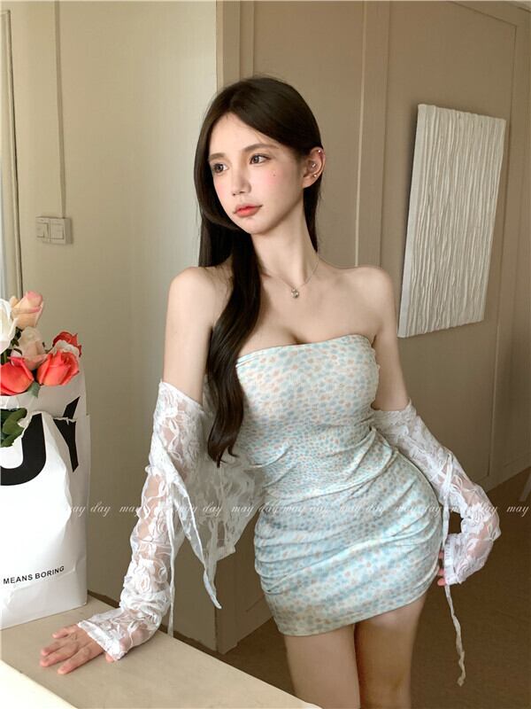 Small dress two-piece suit summer 2022 new fashion floral bag hip tube top dress cardigan top women's clothing カーディガン サマー 夏物 花柄 nana48698212768 | modepoisson