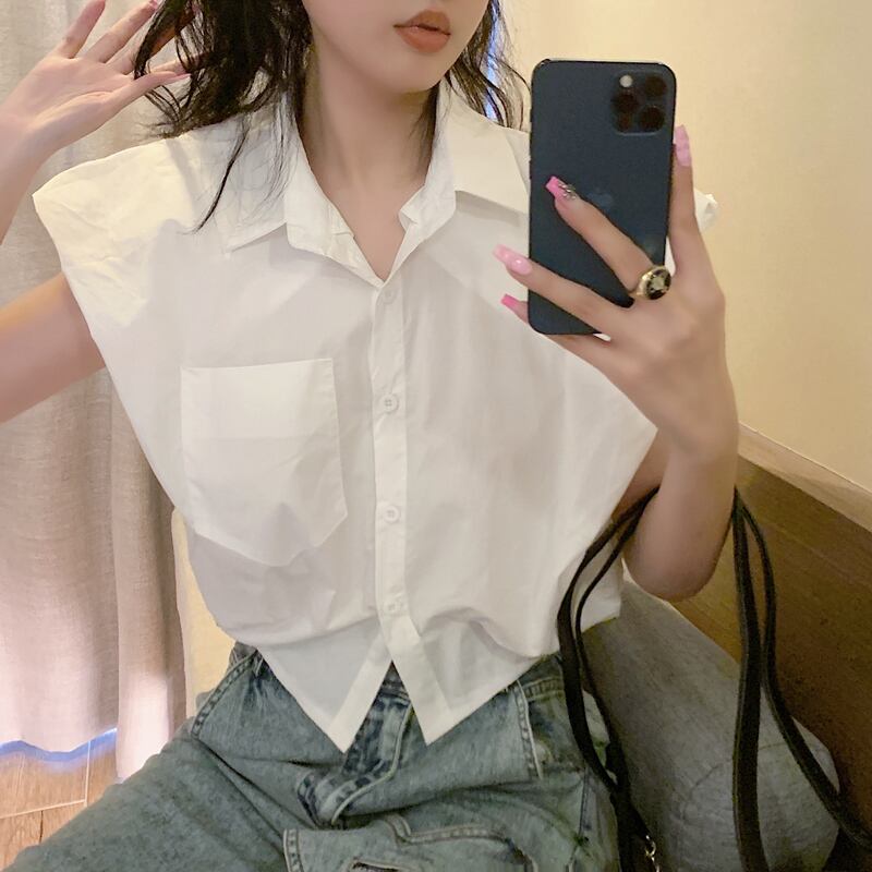 Sense of Niche Chic Unique Sleeveless Shirt Summer 2022 White Loose Short Top ショート ホワイト サマー 夏物 ノースリーブ nana62725951721 | modepoisson