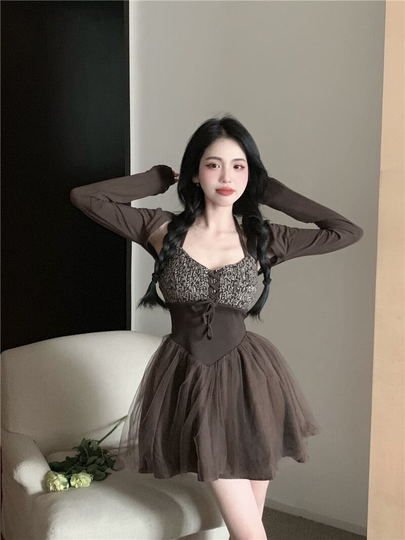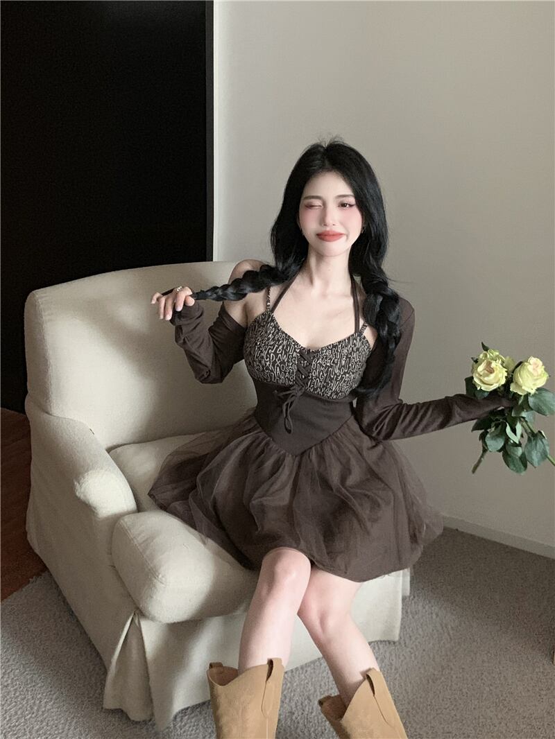 Dress summer women's 2022 new French temperament waist waist thin hanging neck sexy suspender skirt two-piece サマー 夏物 スカート nana55089262161 | modepoisson