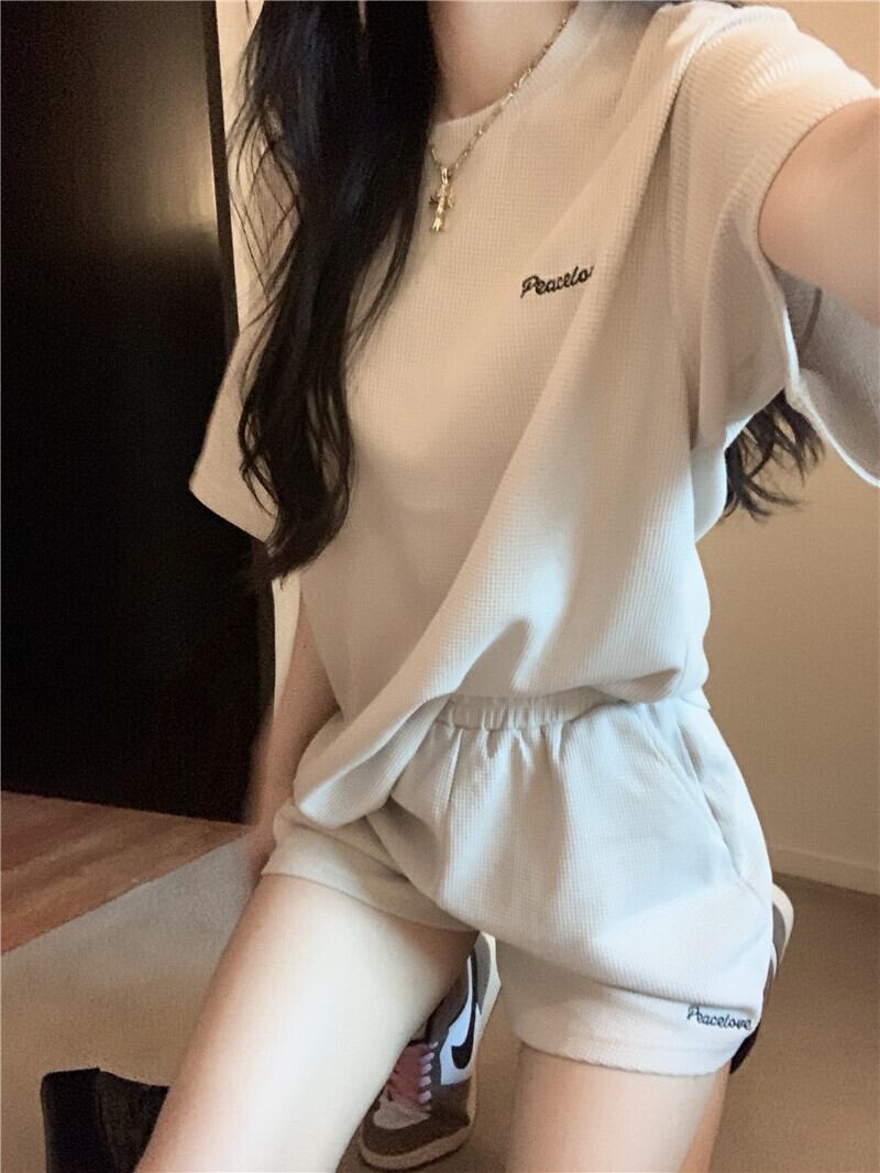 sports style summer two-piece suit women's clothing 2022 new fashion shorts loose short-sleeved slimming top サマー 夏物 ショーツ ブルマー nana52461543461 | modepoisson