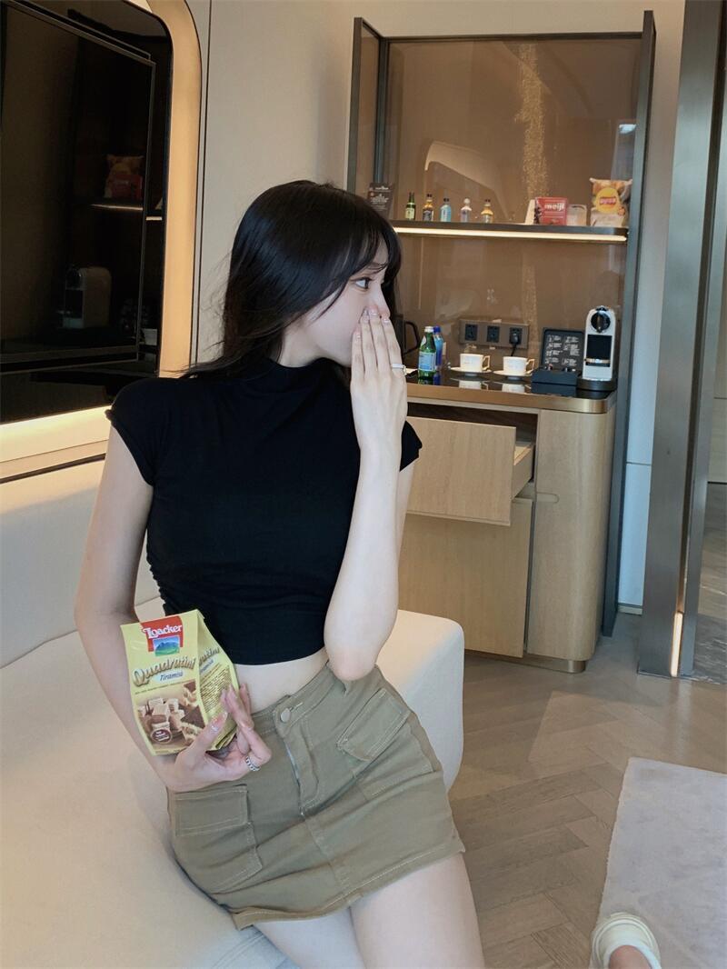 2022 summer new small high-neck design sense of self-cultivation, waist and thin, sweet and spicy t-shirt top women's clothing 大人ガーリー スウィート キュート カジュアル サマー 夏物 Tシャツ nana44079043940 | modepoisson