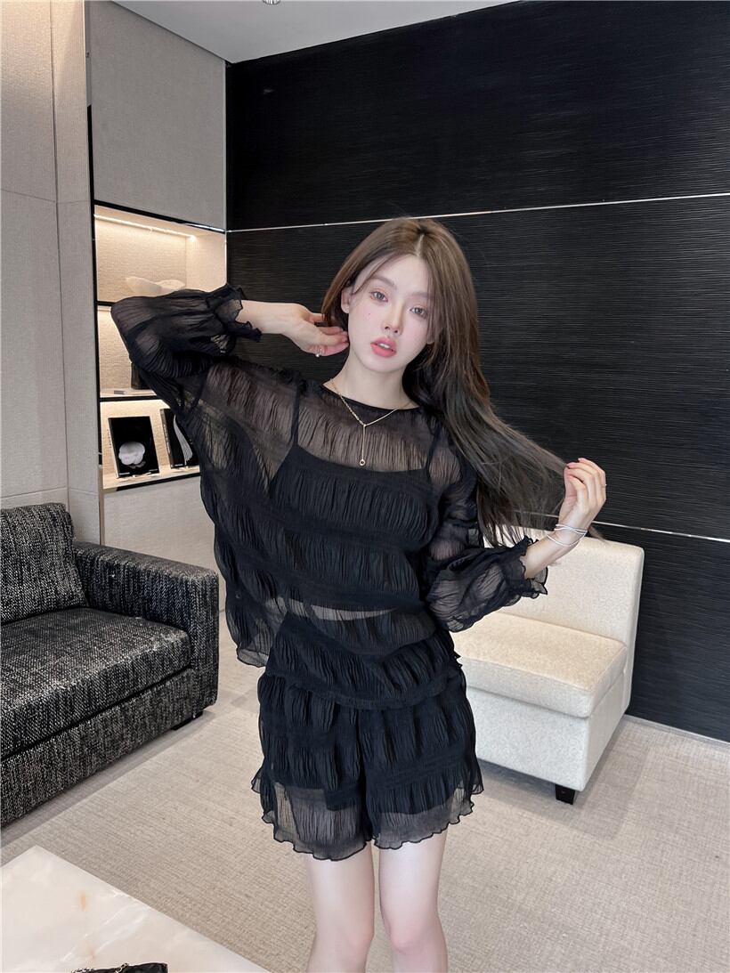 Sweet and spicy style suit female 2022 summer new fashion temperament top high waist wide leg shorts casual two-piece suit ハイウェスト カジュアル 大人ガーリー スウィート キュート サマー 夏物 ショーツ ブルマー ワイドレッグ ワイドパンツ nana23956993120 | modepoisson