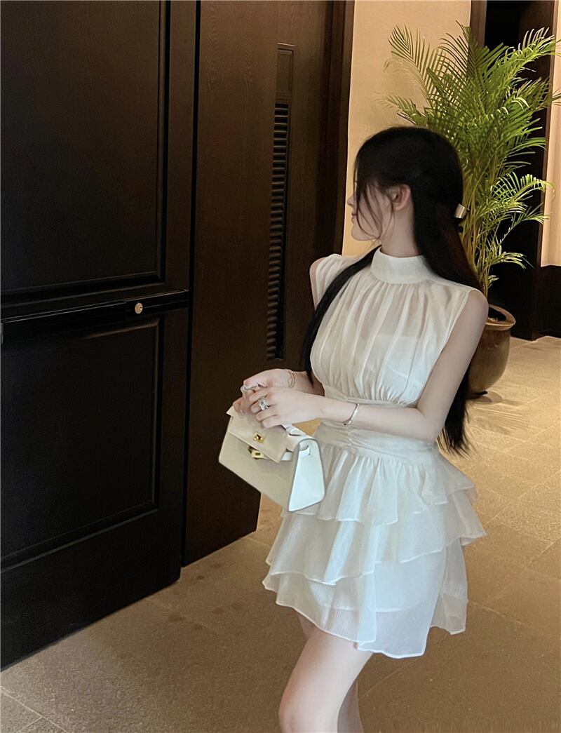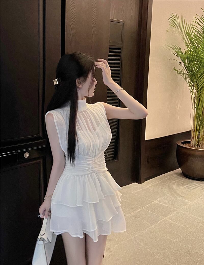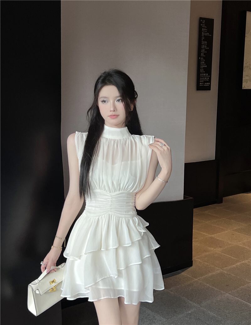 Skirt women's summer 2022 new white dress chiffon high-end sleeveless waist sling two-piece set ホワイト シフォン サマー 夏物 ノースリーブ スカート nana21164288173 | modepoisson