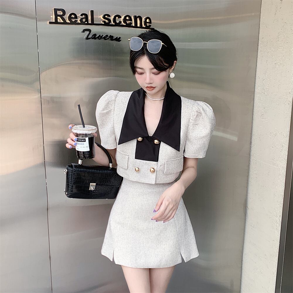 Xiaoxiangfeng suit 2022 summer new fashion ladies temperament top thin skirt women's two-piece summer dress サマー 夏物 スカート nana10107808064 | modepoisson