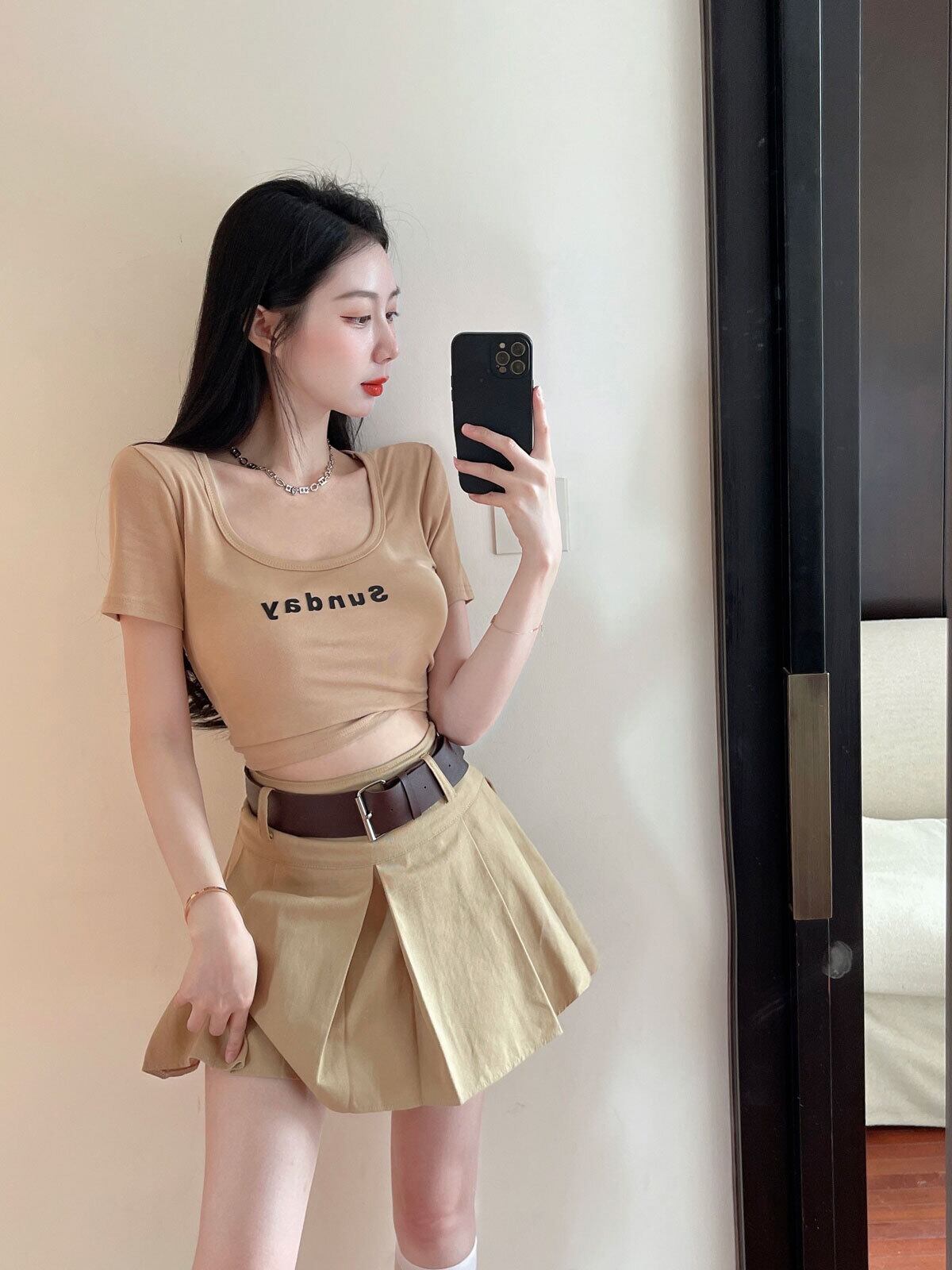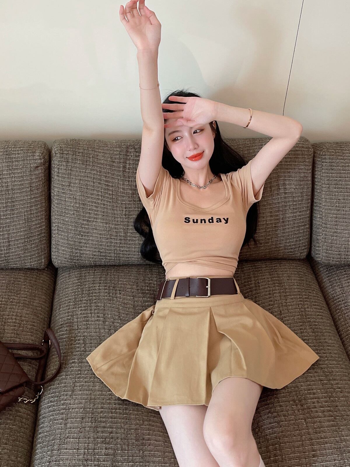 This year's popular skirt two-piece suit temperament short short-sleeved t-shirt is thin and short skirt women's summer new style ショート サマー 夏物 スカート Tシャツ nana21170281991 | modepoisson