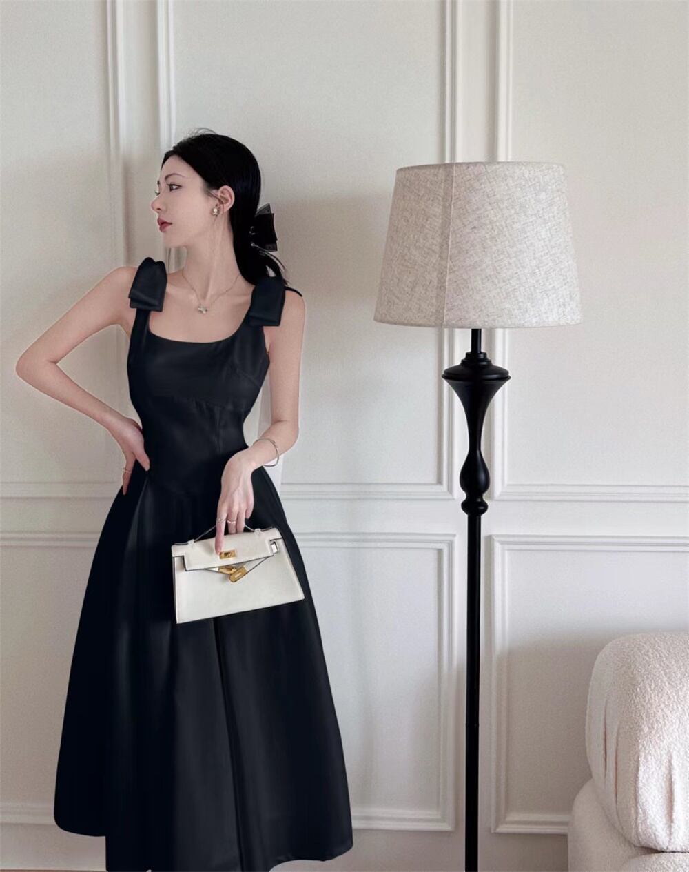 French temperament Hepburn skirt 2022 summer new bow waist chic unique sleeveless dress women リボン サマー 夏物 ノースリーブ スカート nana58029662214 | modepoisson