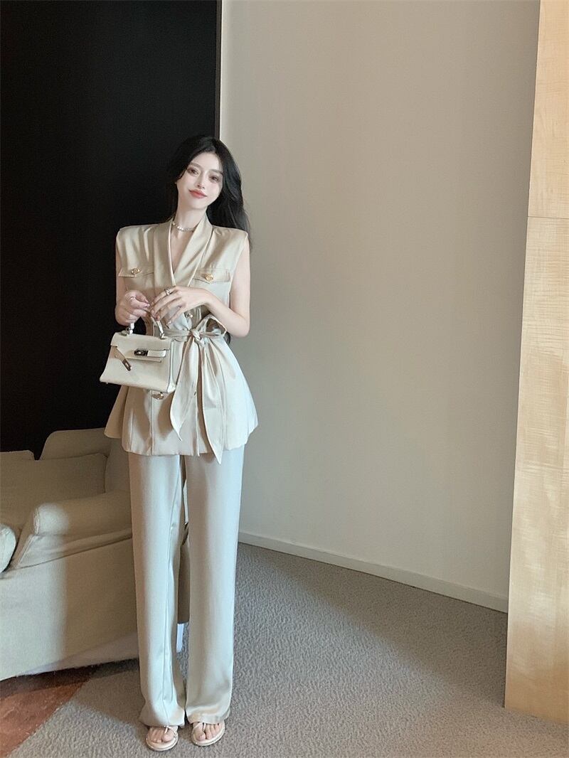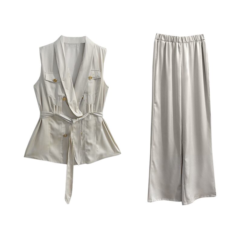 Royal sister style two-piece suit summer women's 2022 new fashion ladies satin vest temperament wide-leg long pants ロング サマー 夏物 サテン nana18879060341 | modepoisson