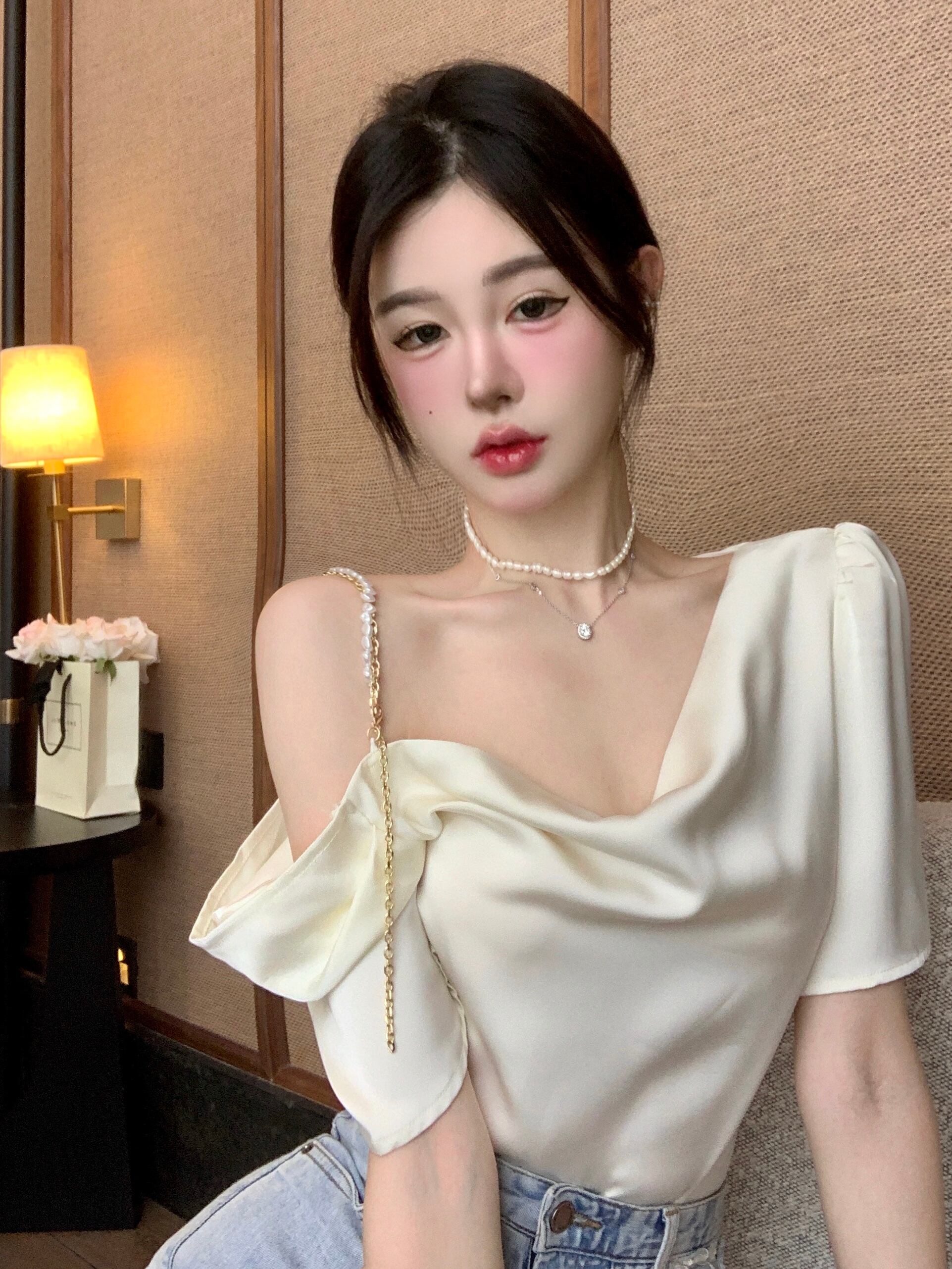 French sweet and spicy pure desire style design niche top women's 2022 summer new off-the-shoulder sexy short-sleeved t-shirt 大人ガーリー スウィート キュート カジュアル サマー 夏物 Tシャツ ピュア nana27311749391 | modepoisson
