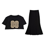 2022 summer new fashion temperament t-shirt split fishtail skirt French bellflower two-piece suit women's clothing サマー 夏物 スカート Tシャツ フラワーデザイン nana69946723450 | modepoisson