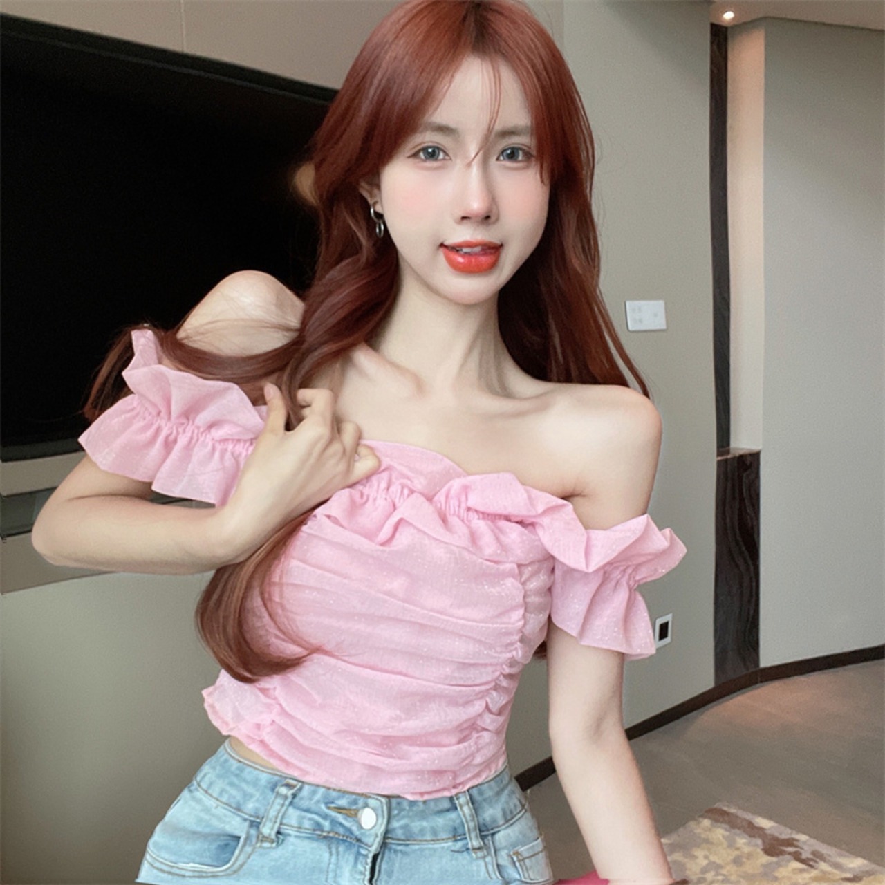 ' shirts 2022 summer new design sense of niche high-end sense one-shoulder off-the-shoulder chiffon shirt top シフォン シャツ サマー 夏物 nana74119539262 | modepoisson