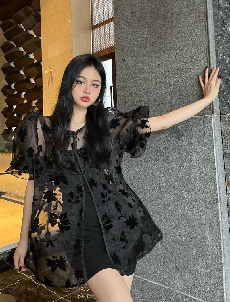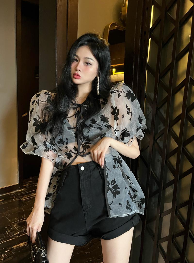 Button-up shirt women's 2022 summer new design niche shirt puff sleeves perspective organza sunscreen top サマー 夏物 nana68955306941 | modepoisson