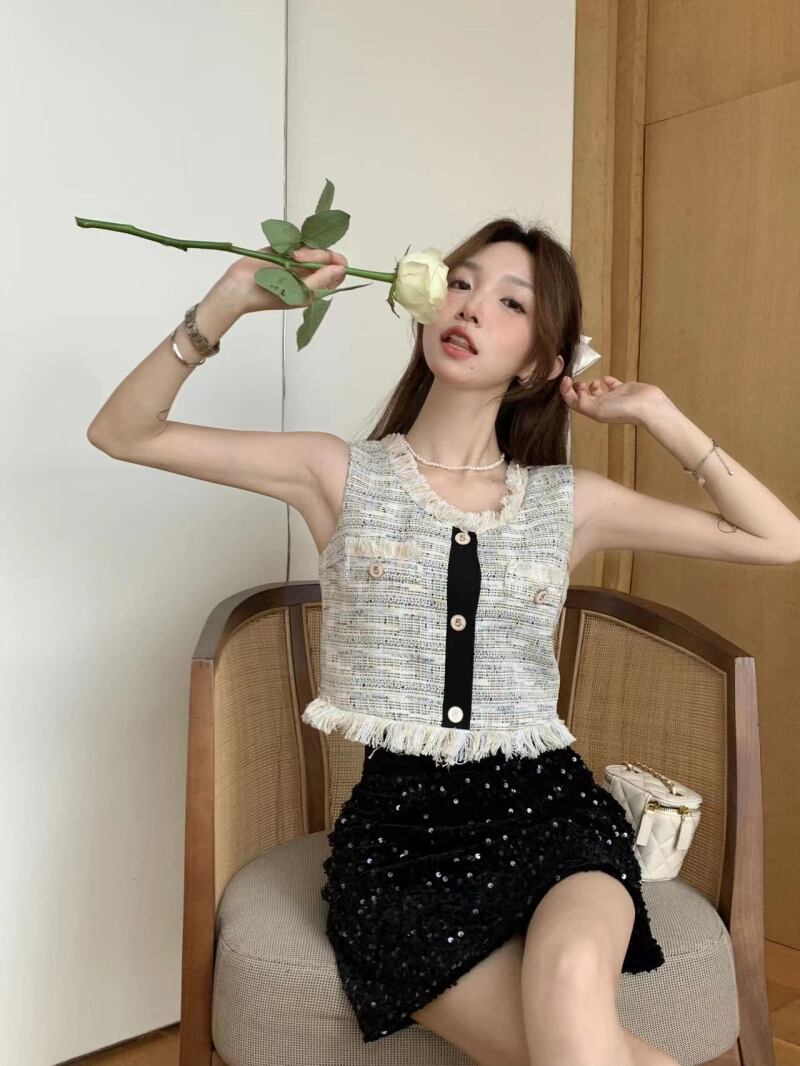 ladies temperament suit women's clothing 2022 summer new net red small fragrance vest skirt two-piece set レッド サマー 夏物 スカート nana72784261926 | modepoisson