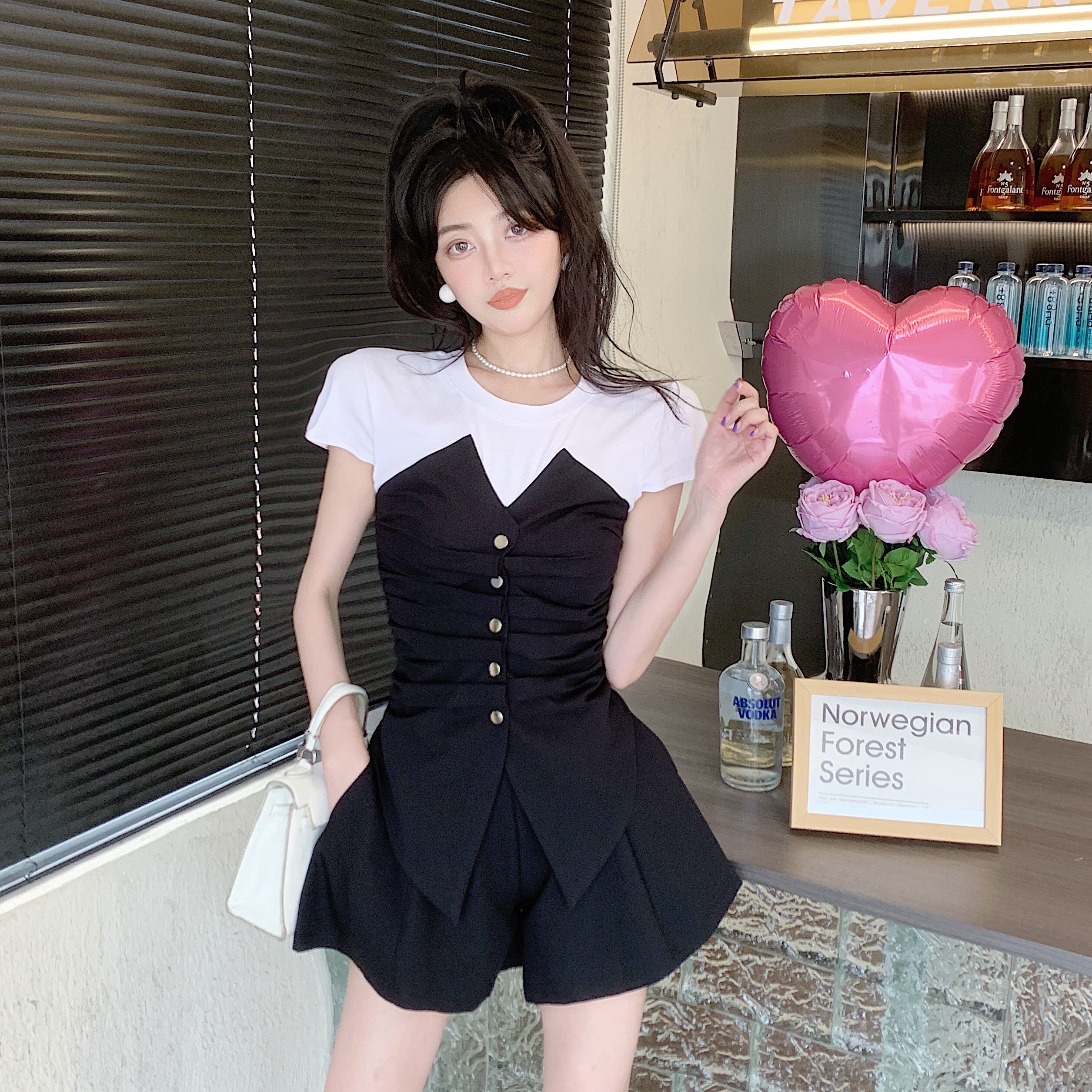 Suit net red goddess fan 2022 summer new design niche top two-piece wide-leg shorts レッド サマー 夏物 ショーツ ブルマー nana6981535359 | modepoisson