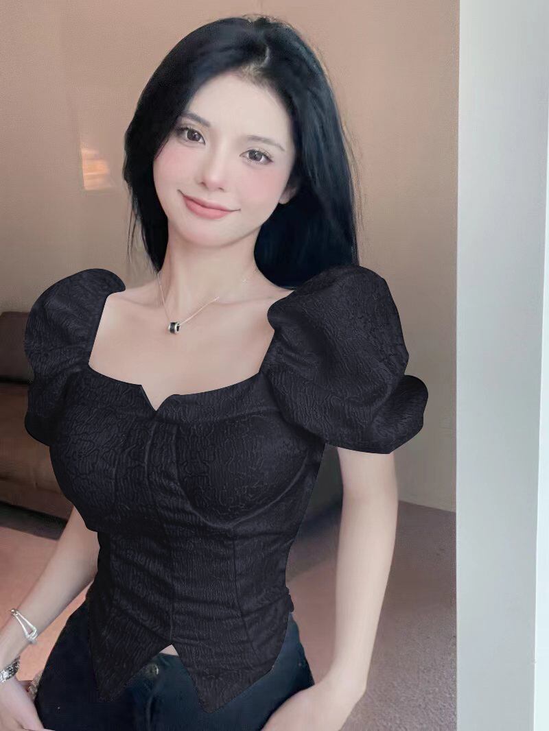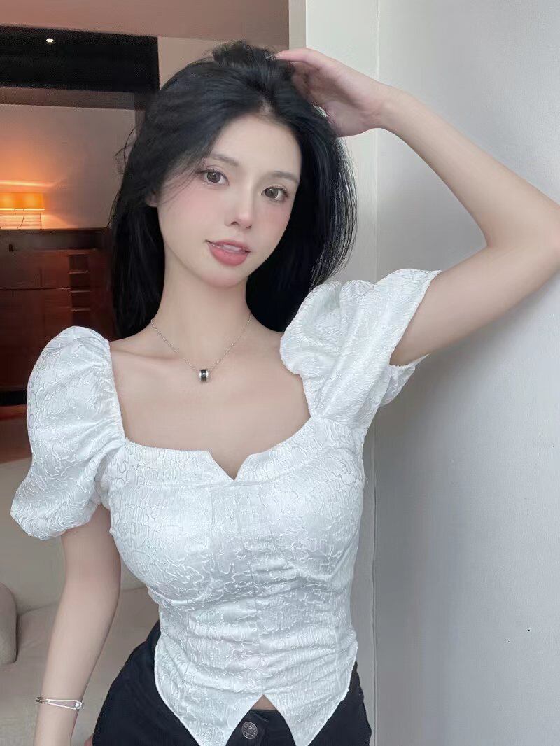 French court style white square neck puff sleeve short shirt women's summer niche chic stunning unique top ショート ホワイト サマー 夏物 スクウェア nana24850500814 | modepoisson