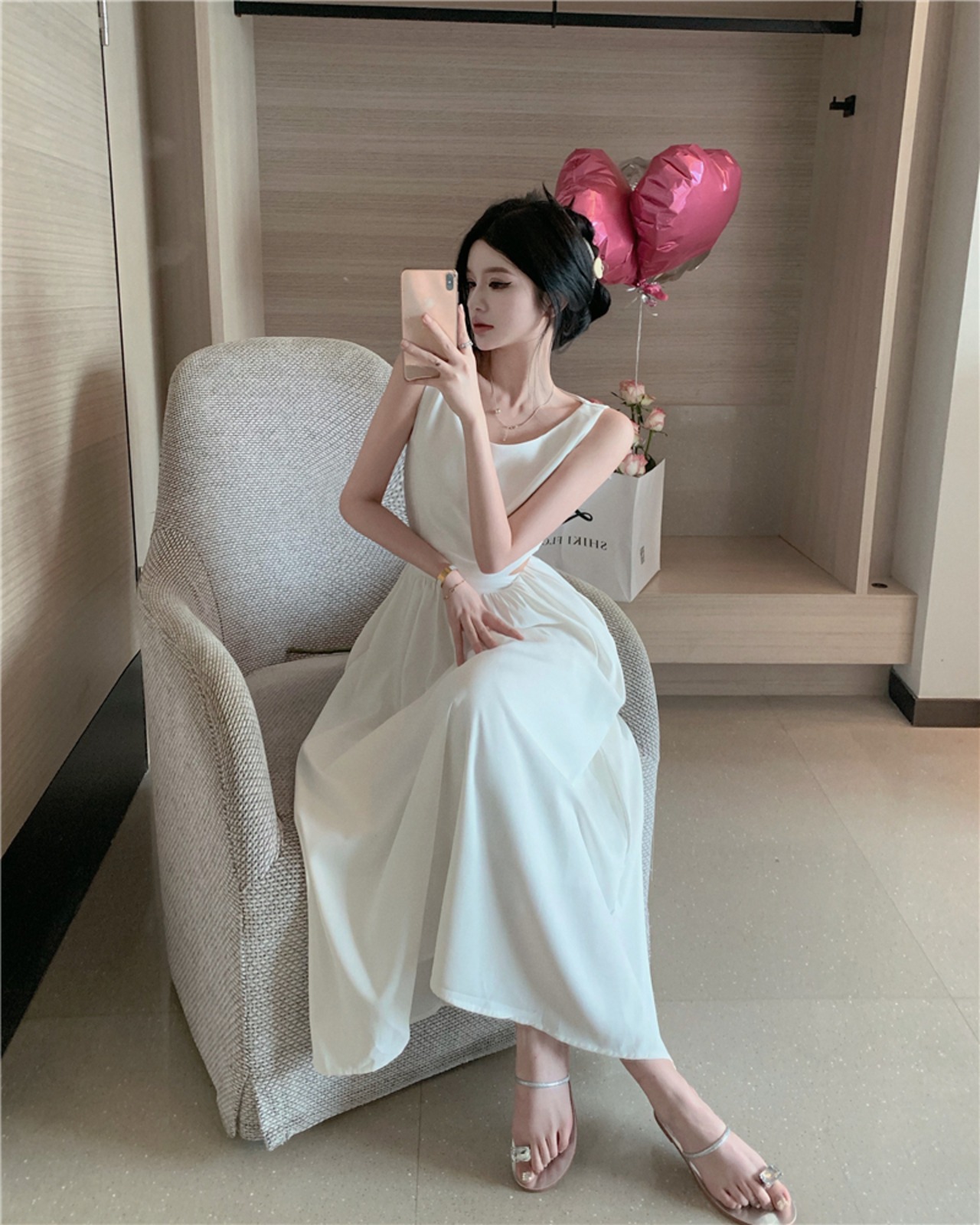 -quality waistless sleeveless dress 2022 summer new French temperament gentle wind white long skirt women's clothing ロング ホワイト サマー 夏物 ノースリーブ スカート nana67755665063 | modepoisson