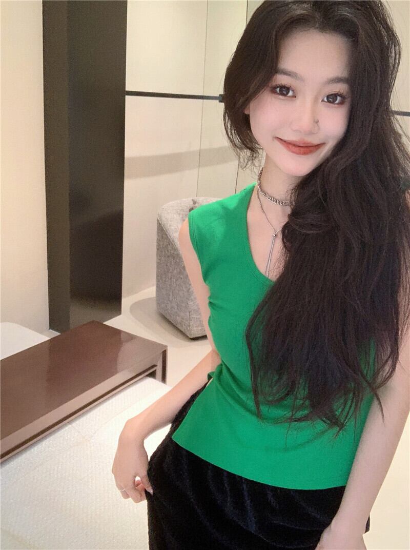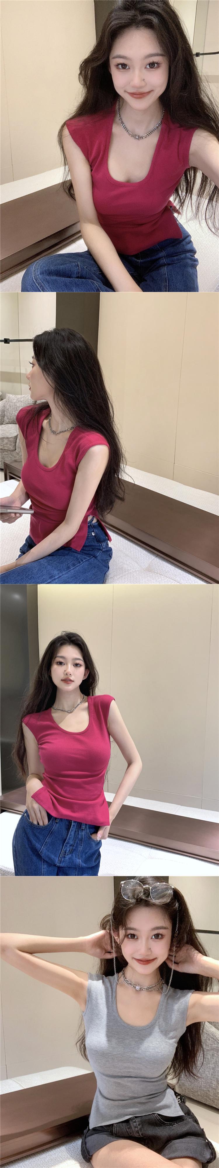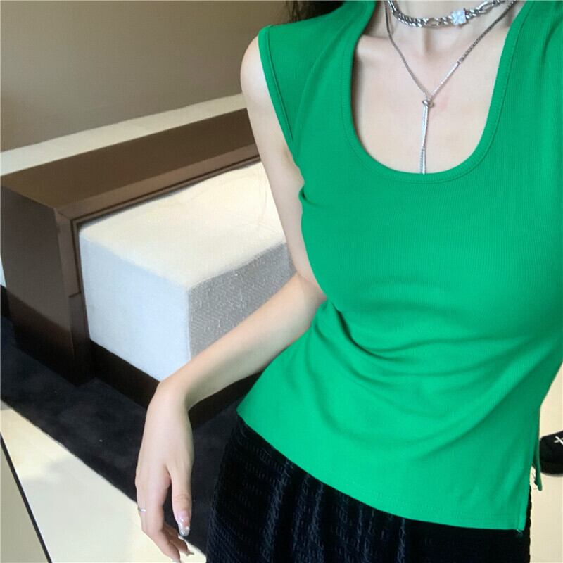Slit camisole women's summer outerwear French niche chic unique sexy inner sleeveless short top ショート サマー 夏物 ノースリーブ nana33243503012 | modepoisson