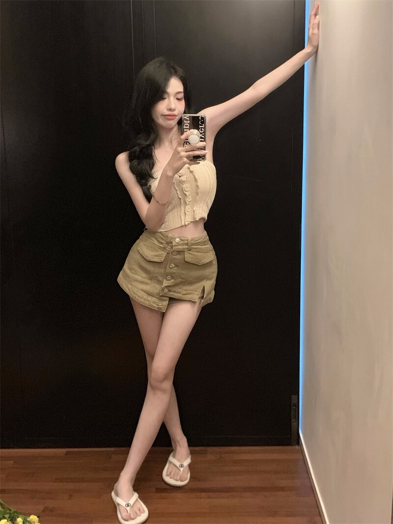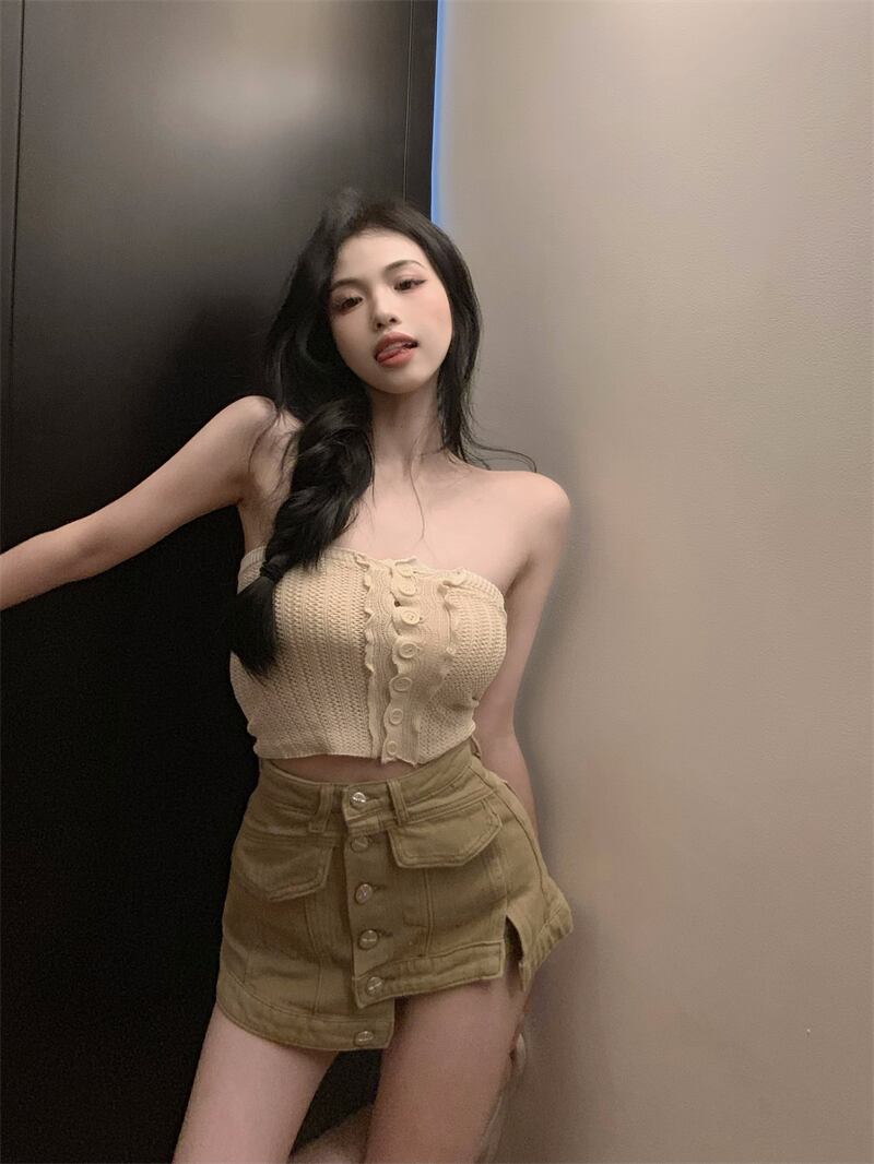 Hot suit women's 2022 summer new sexy tube top top denim half-length pants skirt small two-piece set サマー 夏物 スカート nana84734464906 | modepoisson