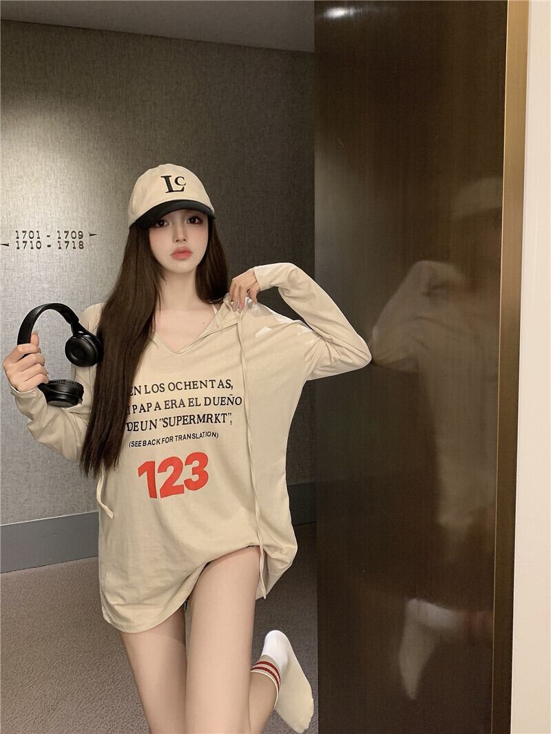 Long-sleeved hooded loose and thin sunscreen top 2022 summer new design niche temperament t-shirt women's clothing ロング サマー 夏物 Tシャツ nana90323498628 | modepoisson