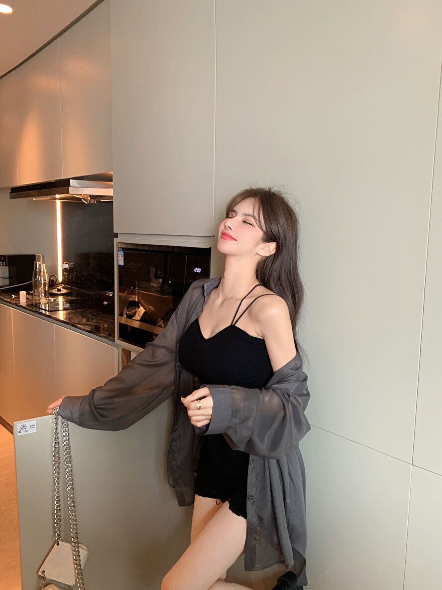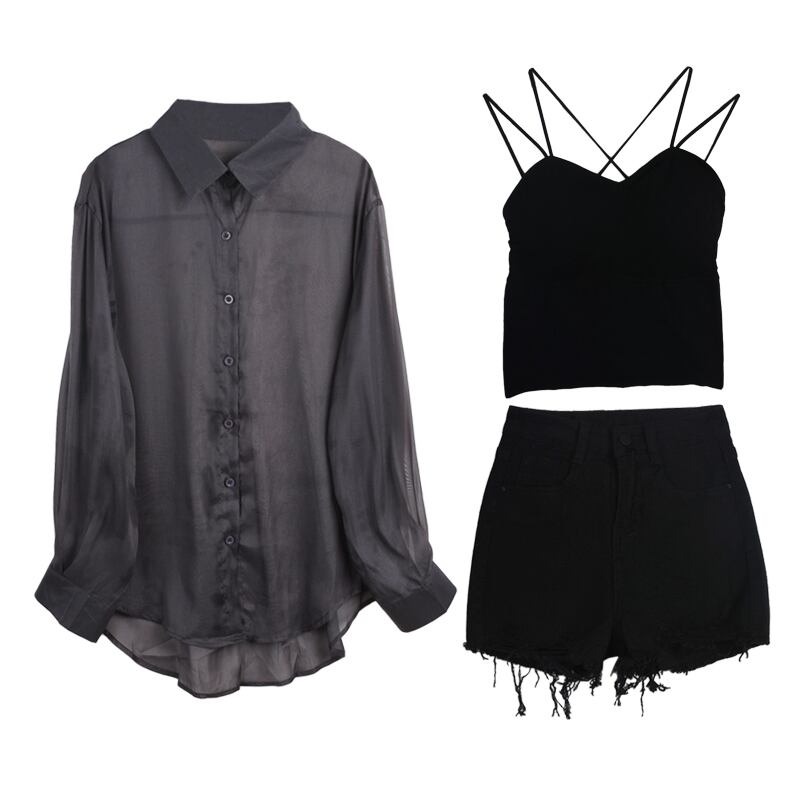 Summer three-piece suit female 2022 new fashion long-sleeved sunscreen shirt beautiful back high waist ripped denim shorts ハイウェスト ロング サマー 夏物 ショーツ ブルマー nana84146163419 | modepoisson