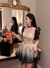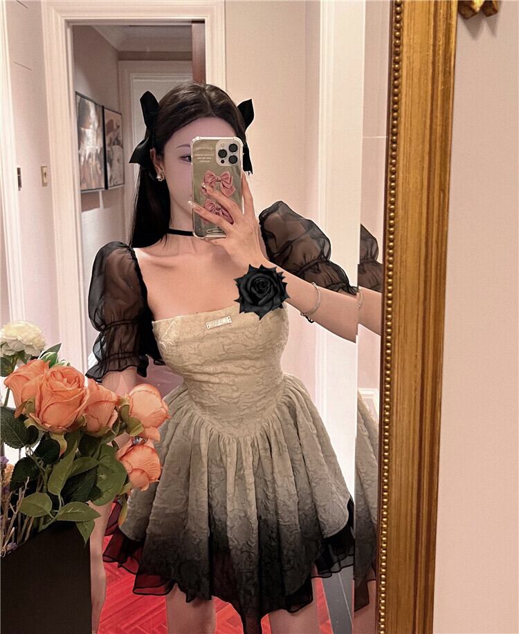 2022 summer new Hepburn style puff sleeve dress women's high-end fluffy princess style a-line skirt ふわふわ サマー 夏物 スカート Aライン nana36646274271 | modepoisson