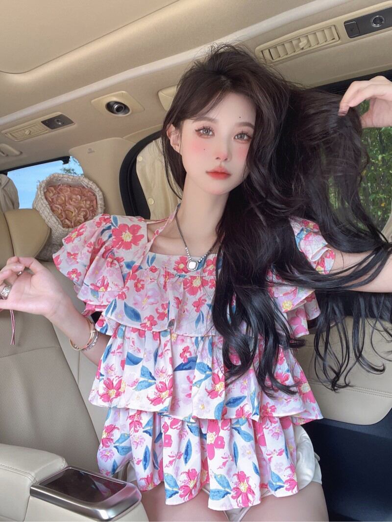 Gentle wind Feifei sleeve design niche top 2022 summer new square collar temperament chiffon shirt women's clothing シフォン サマー 夏物 スクウェア nana75622836634 | modepoisson