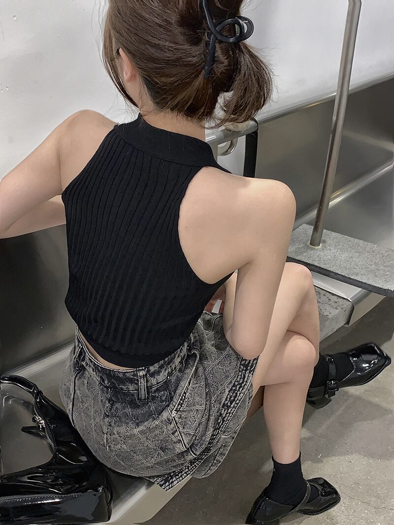 Vest women's summer outerwear niche sexy sweet pure desire wind ice silk knitted short sleeveless top ショート 半袖 ハーフスリーブ 大人ガーリー スウィート キュート カジュアル サマー 夏物 ノースリーブ シルク ピュア nana85336584945 | modepoisson