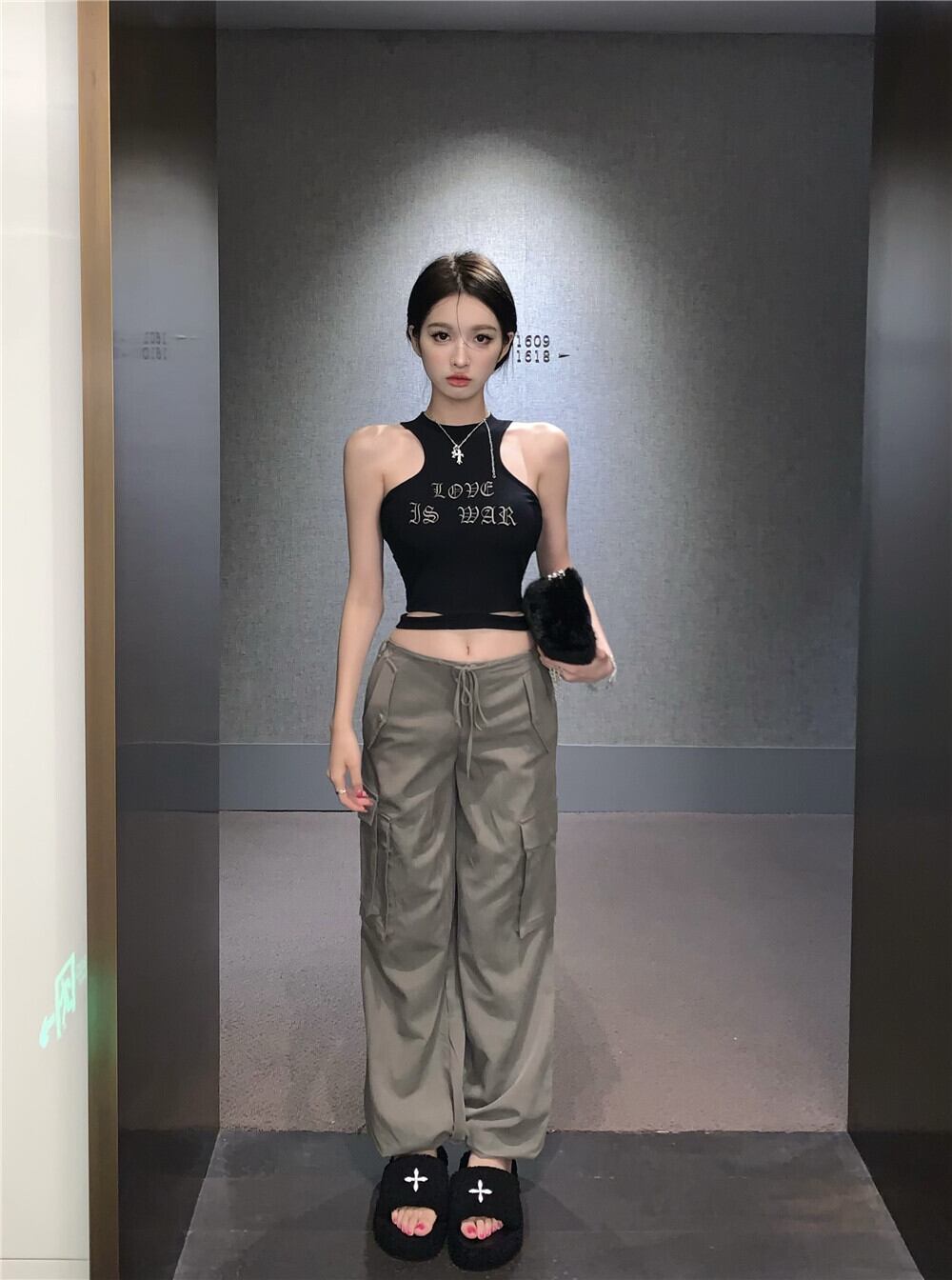 Black top women's summer American retro design feeling tight and thin sleeveless outer wear short vest ショート ブラック レトロ サマー 夏物 ノースリーブ nana43301617068 | modepoisson