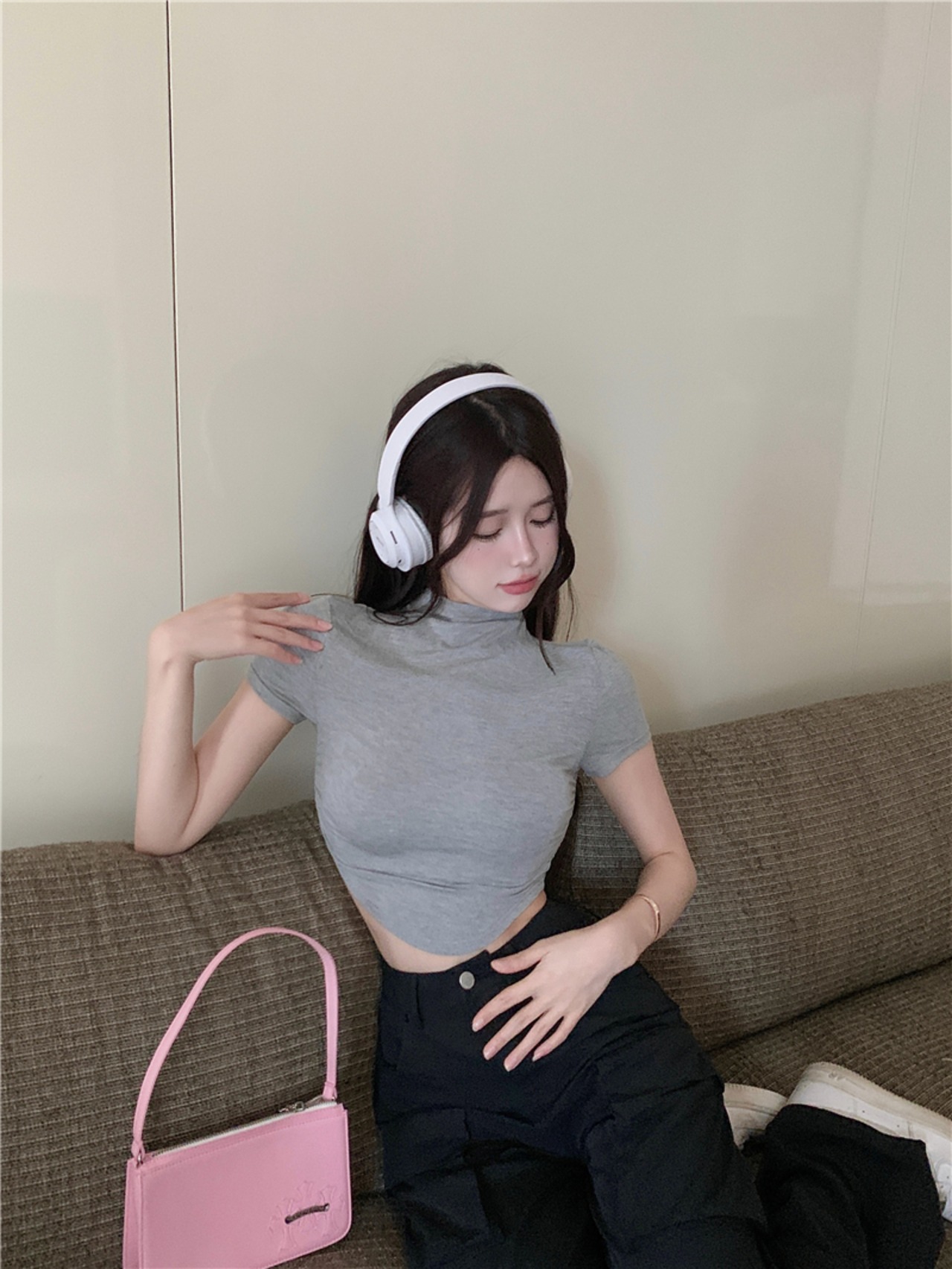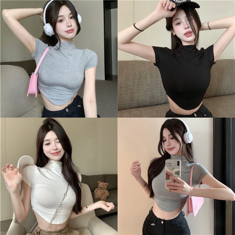 Slim fit design niche short-sleeved t-shirt women's summer French temperament chic unique sweet short top ショート 大人ガーリー スウィート キュート カジュアル サマー 夏物 Tシャツ nana93041869134 | modepoisson