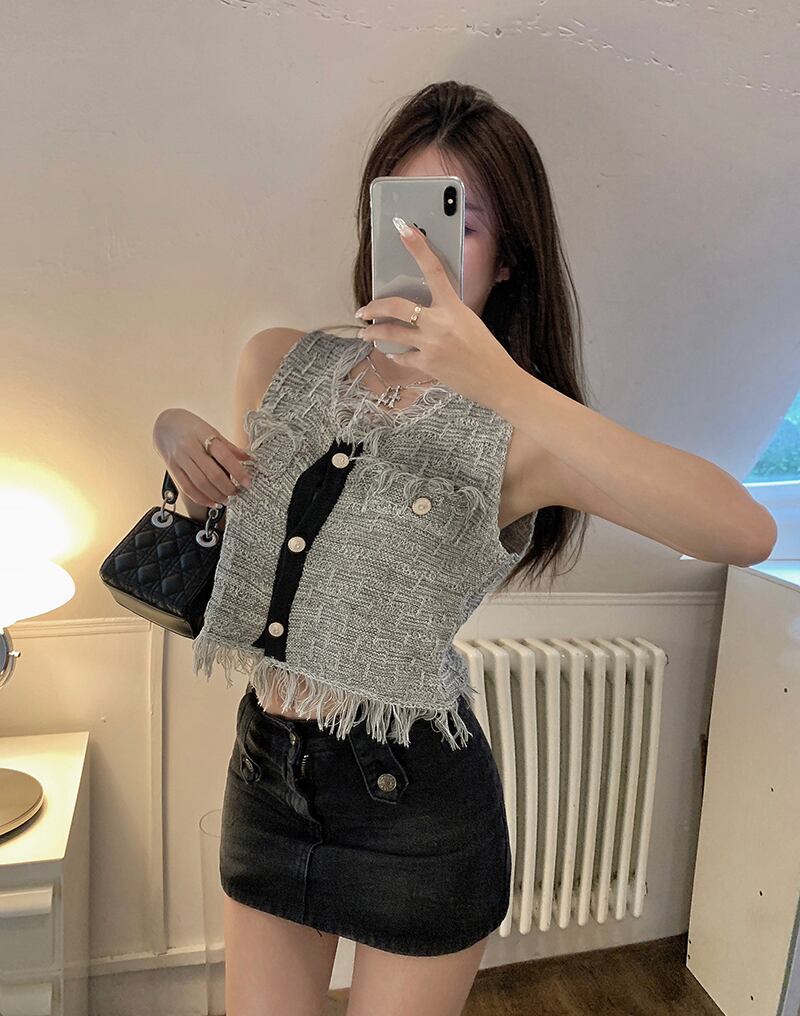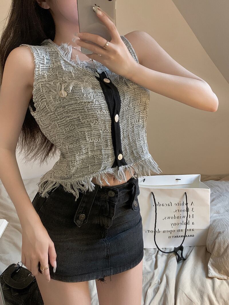 Xiaoxiangfeng vest ice silk knitted vest women's 2022 summer new cardigan thin section design sense vest top カーディガン サマー 夏物 シルク nana81430171181 | modepoisson