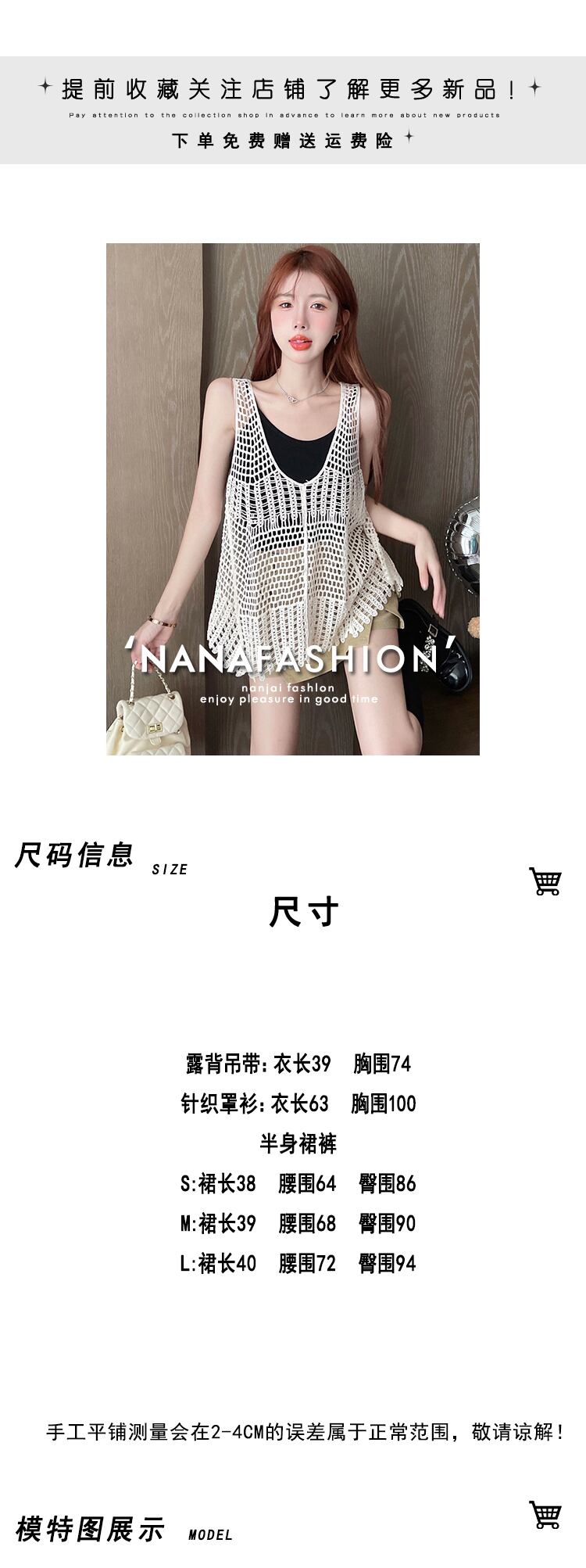 Sweet and spicy fried street three-piece suit women's 2022 summer new hollow top camisole denim skirt ストリート 大人ガーリー スウィート キュート カジュアル サマー 夏物 スカート nana24316200771 | modepoisson