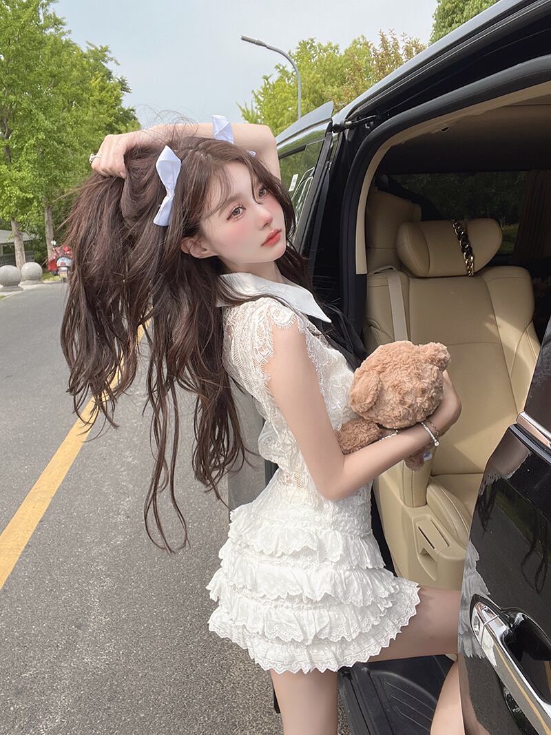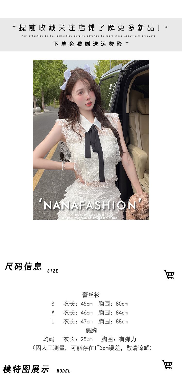 French hollow lace women's clothing 2022 summer new high-end eign style small shirt wrap chest top two-piece suit レース サマー 夏物 nana88778770628 | modepoisson