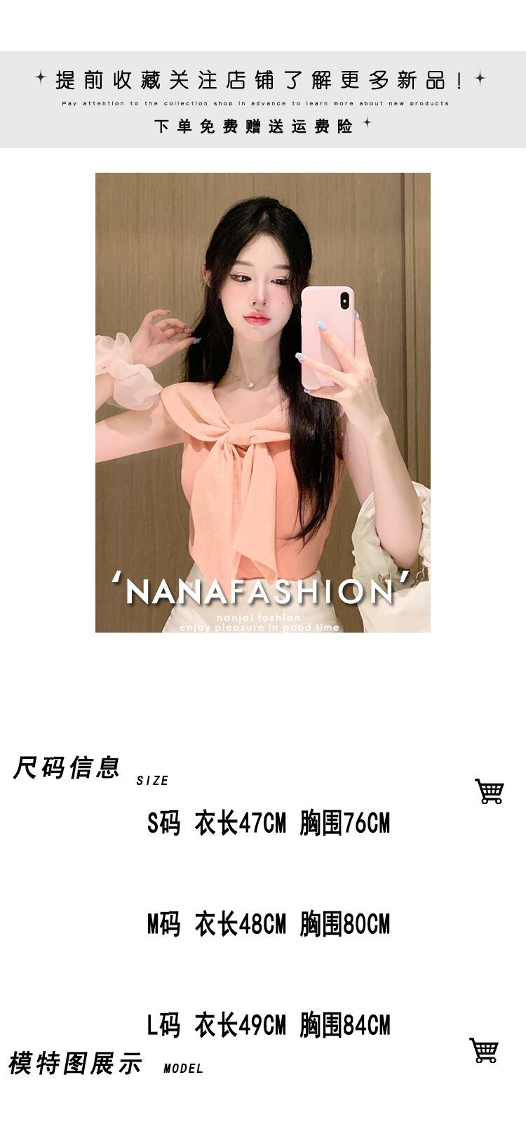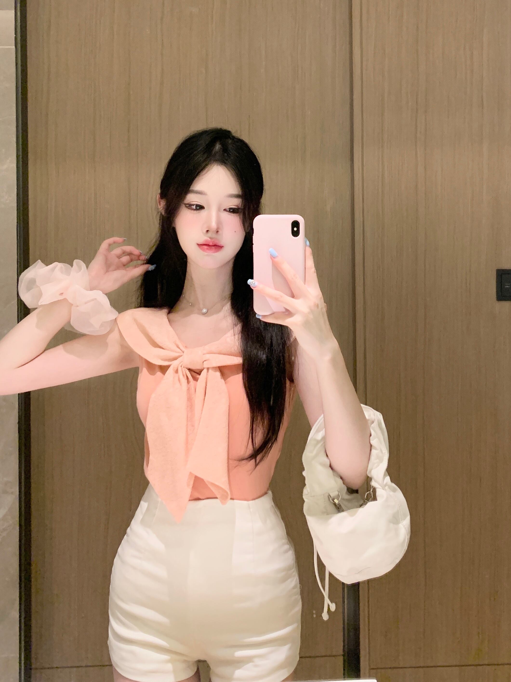 2022 summer new high-end solid color sweet bow sleeveless design niche chic t-shirt top women リボン 大人ガーリー スウィート キュート カジュアル サマー 夏物 ノースリーブ Tシャツ ソリッドカラー nana50474065357 | modepoisson