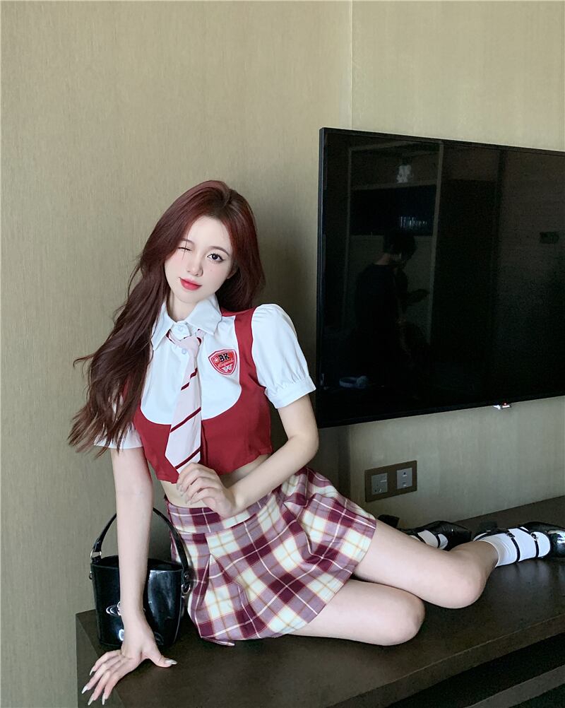 Lively and playful American college style tie vest top is thin and high waist skirt summer small suit women's clothing ハイウェスト サマー 夏物 スカート nana95243883704 | modepoisson