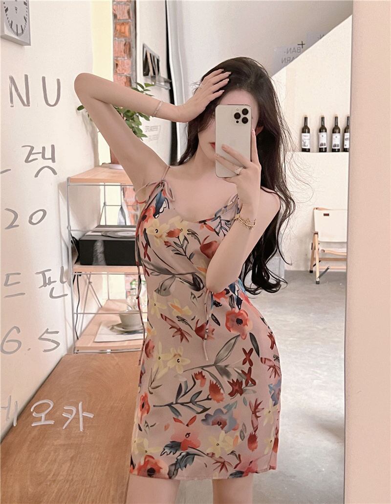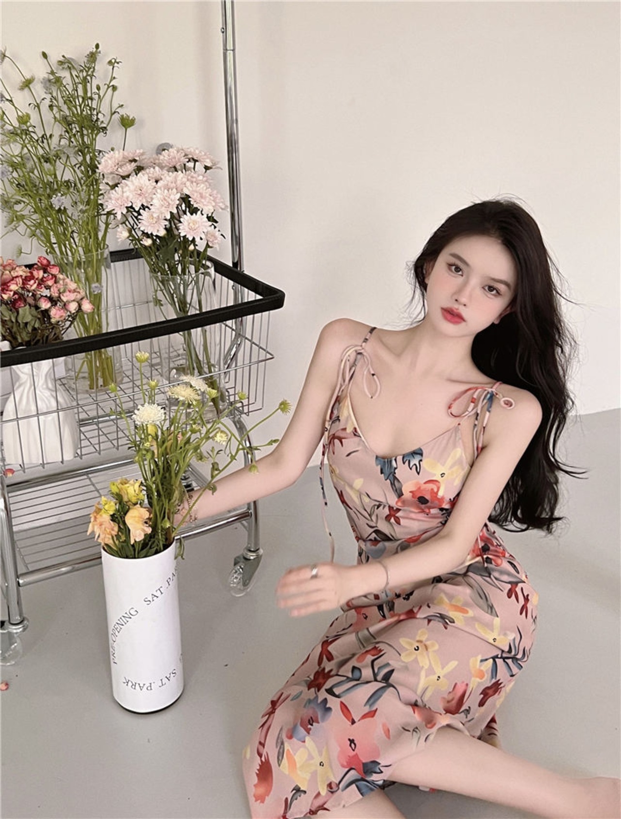 French gentle style chic stunning tea break beautiful floral suspender skirt summer high waist thin dress women's tide ハイウェスト サマー 夏物 花柄 スカート nana23035622702 | modepoisson