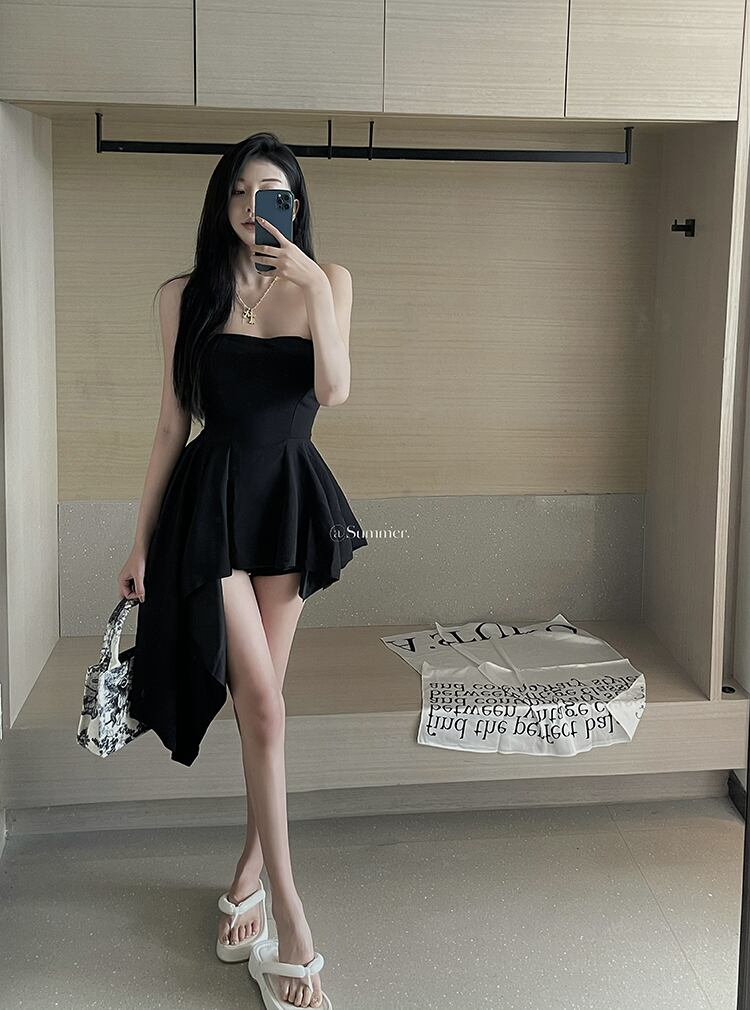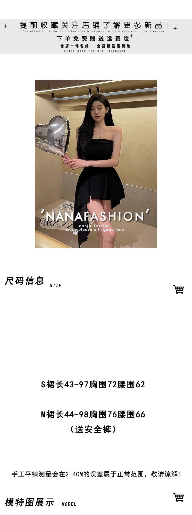 Black Tube Top Dress Chic Sweet and Spicy 2022 Summer French Temperament Waist Short Skirt Women's ショート ブラック 大人ガーリー スウィート キュート カジュアル サマー 夏物 スカート nana95226336140 | modepoisson