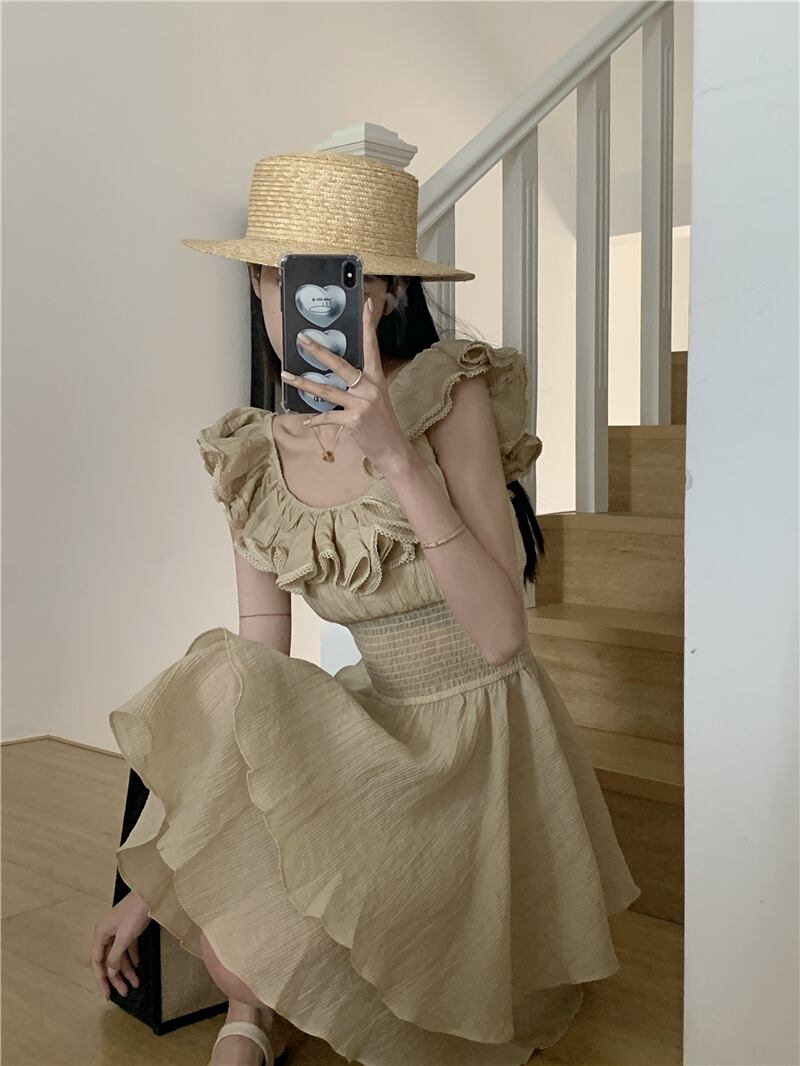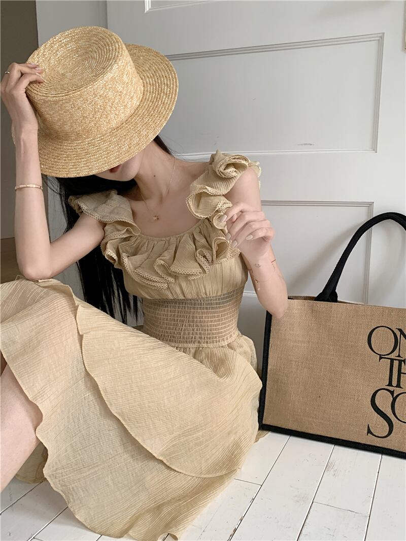 French design sense waist one-shoulder sleeveless dress women's 2022 summer new chic and unique retro skirt レトロ サマー 夏物 ノースリーブ スカート nana56319173640 | modepoisson