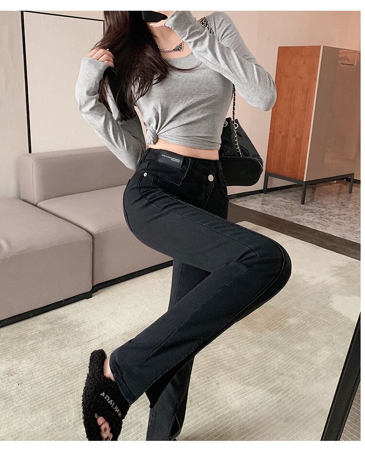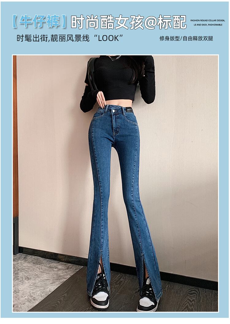 Slit Micro-Flare Jeans Women's Summer 2022 Waist Slim Slim Hot Girl Sense Long Pants ロング サマー 夏物 スリム nana14201466746 | modepoisson