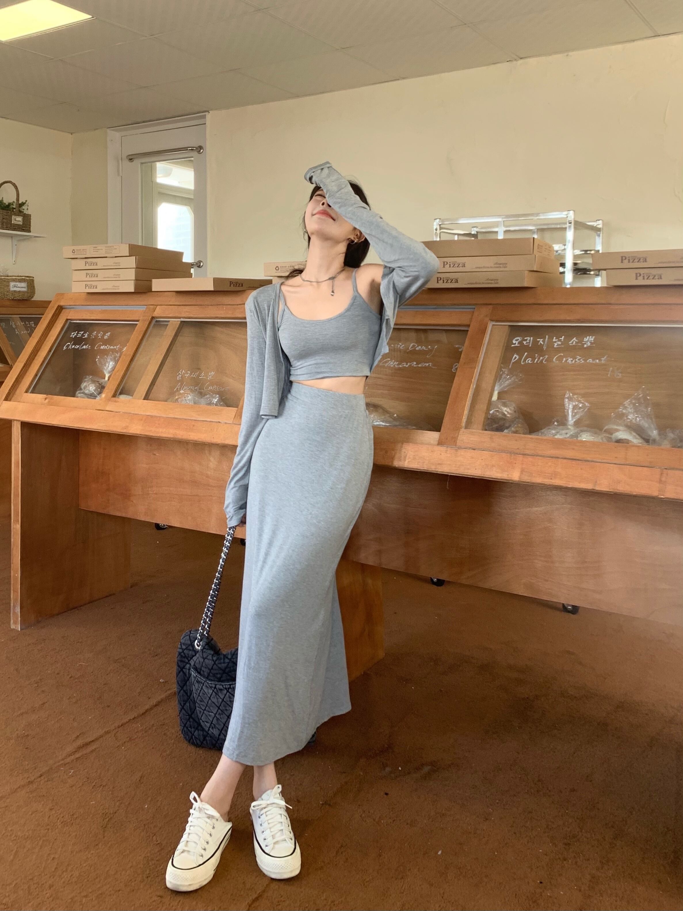 Net red three-piece suit 2022 summer new fashion age-reducing fried street sling cardigan top skirt women's clothing レッド ストリート カーディガン サマー 夏物 スカート nana25231795891 | modepoisson