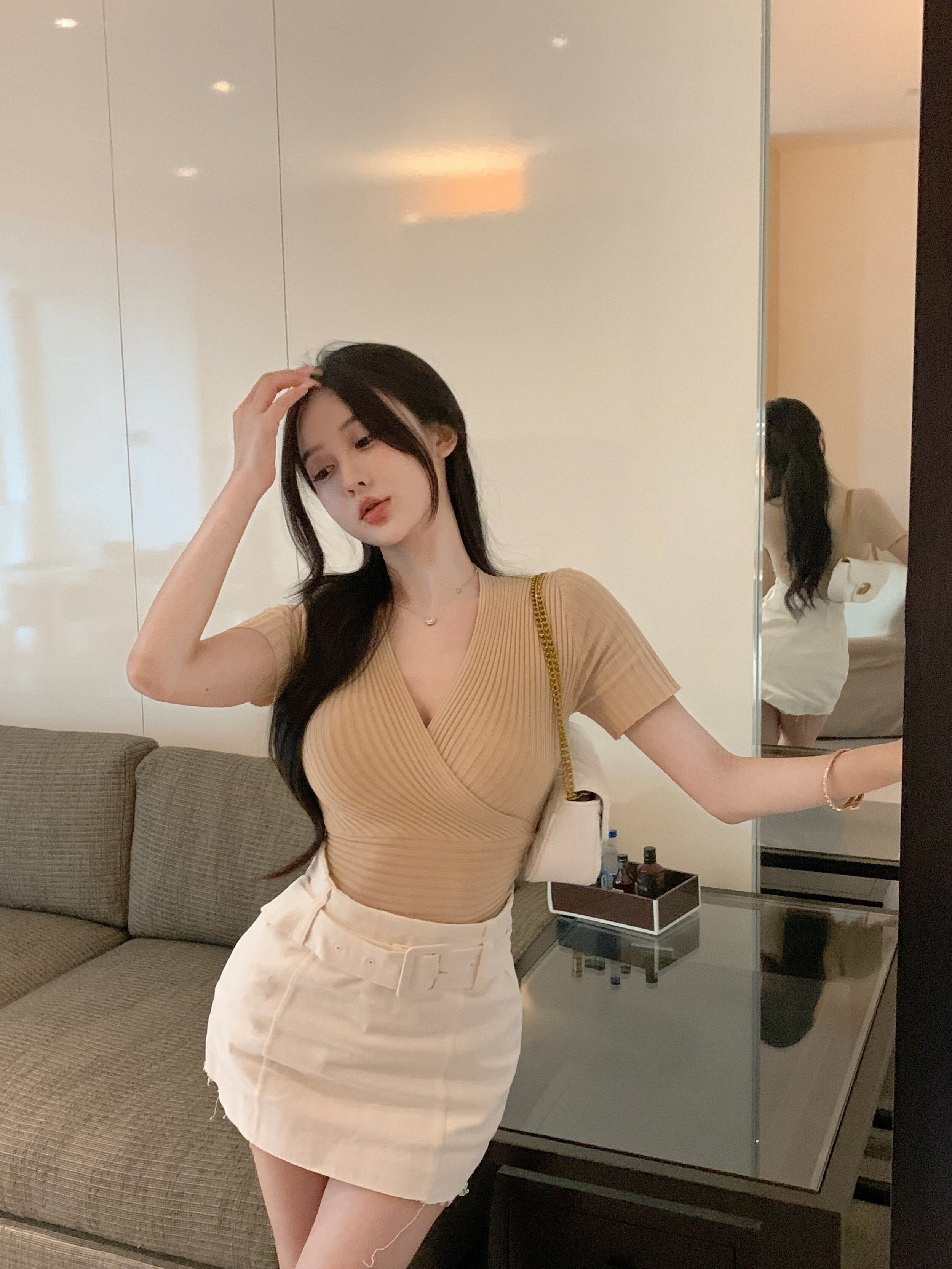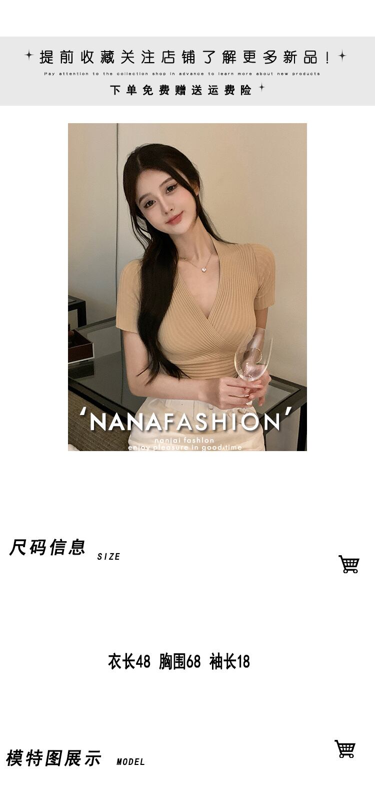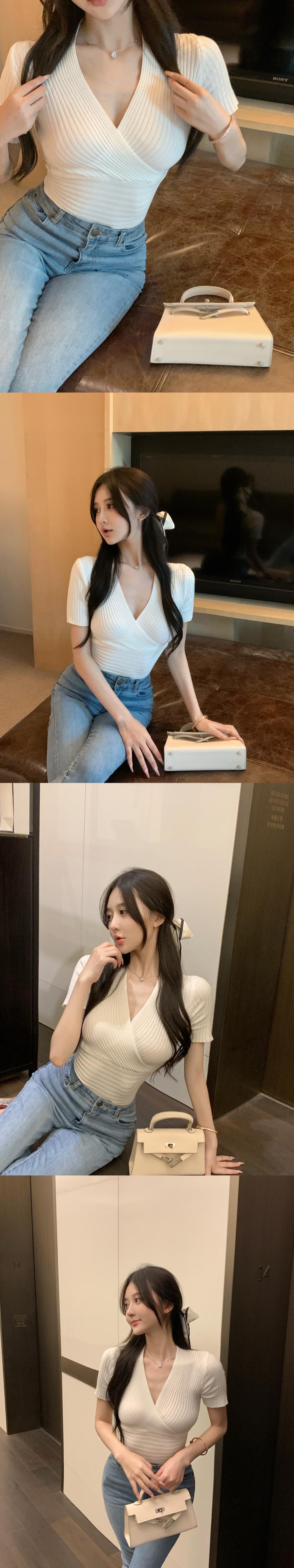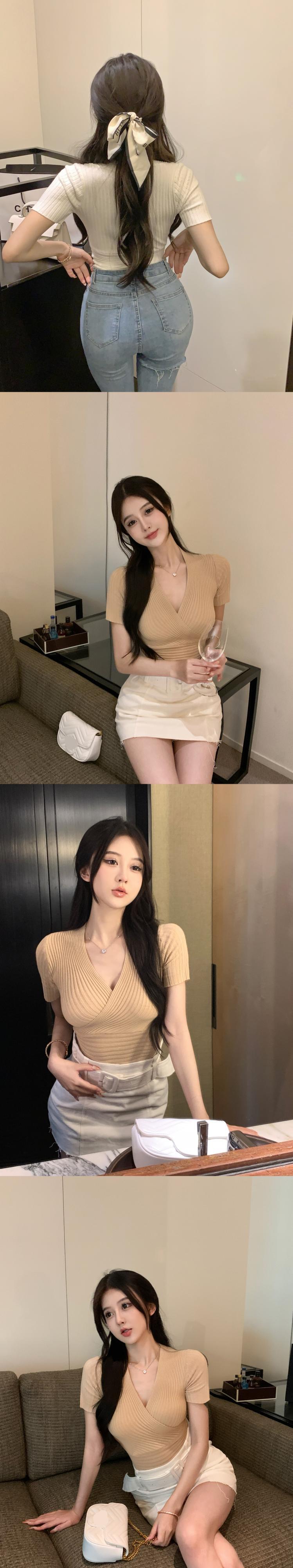 Pure desire wind sexy waist tight tight thin French niche cross V-neck gentle summer knitted sweater top women's clothing サマー 夏物 Vネック nana79694762763 | modepoisson