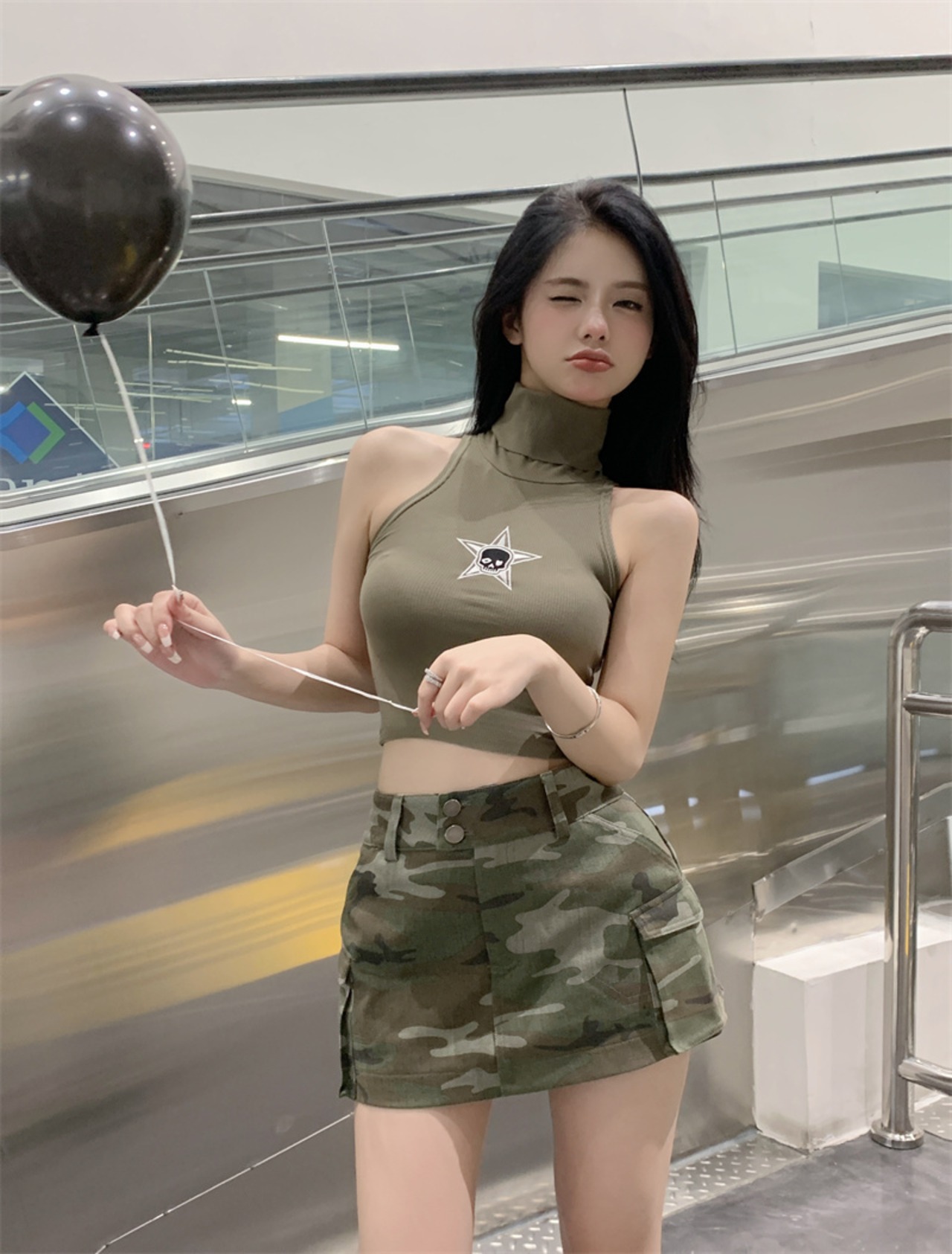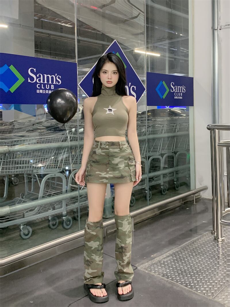 色:迷彩スカート,アーミーグリーンvest,Camo脚Socks