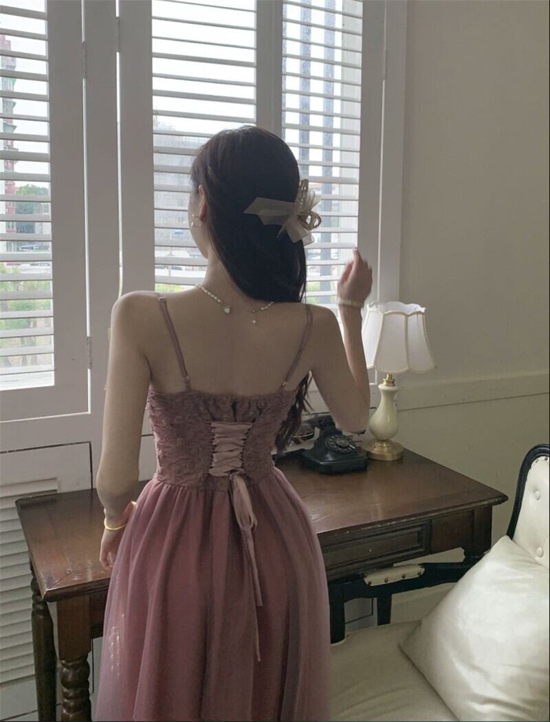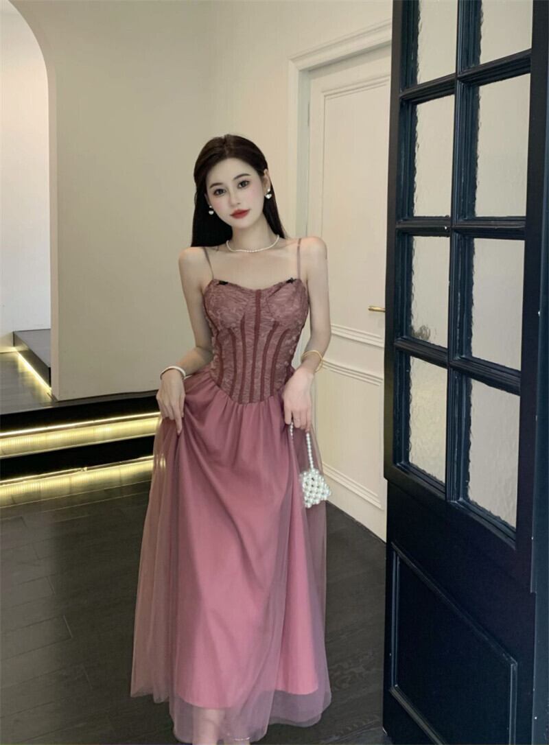 Lace mesh chic stunning dress women's 2022 summer new French temperament waist suspender long skirt ロング レース サマー 夏物 メッシュ スカート nana76809020142 | modepoisson